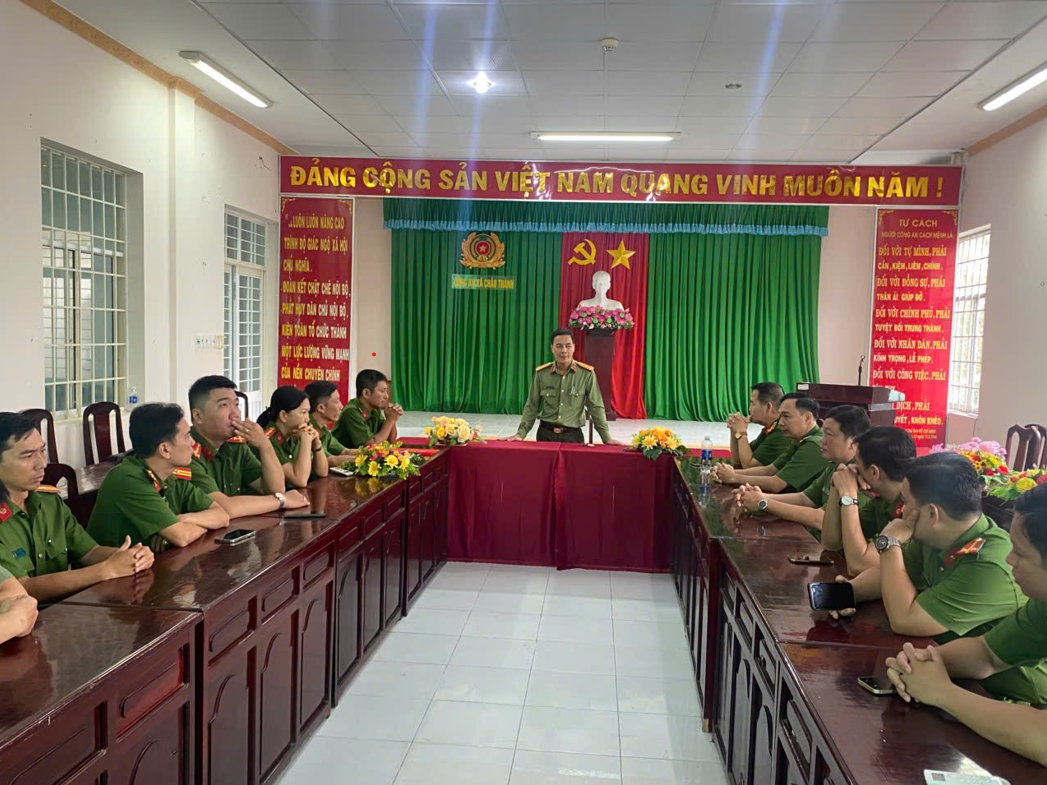 Phát biểu tại buổi Lễ, đồng chí Thượng tá Nguyễn Quốc Trung, Ủy viên Ban Thường vụ Đảng ủy, Trưởng Công an xã Châu Thành chúc mừng các đồng chí và tin tưởng rằng trên cương vị công tác mới, các đồng chí sẽ phát huy năng lực, sở trường, kinh nghiệm công tác của mình, nêu cao tinh thần trách nhiệm, phẩm chất đạo đức, tận tụy, sáng tạo trong thực hiện nhiệm vụ được giao, cùng tập thể đơn vị tiếp tục hoàn thành xuất sắc nhiệm vụ bảo đảm an ninh, trật tự tại địa phương.