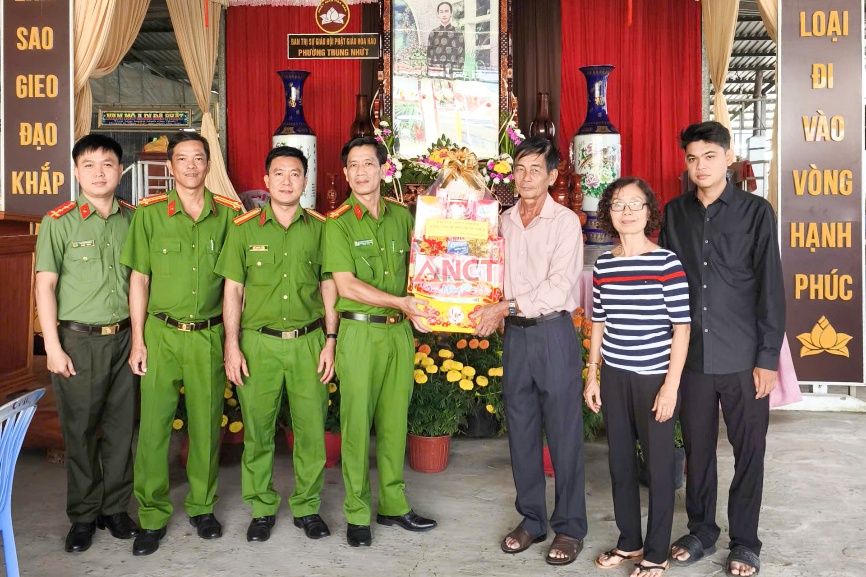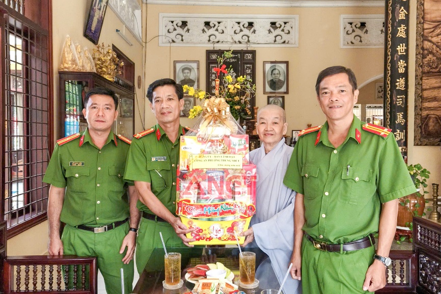 Công an phường Trung Nhứt đến thăm, chúc Tết Chùa Vi Phước, khu vực Thạnh Phước 1