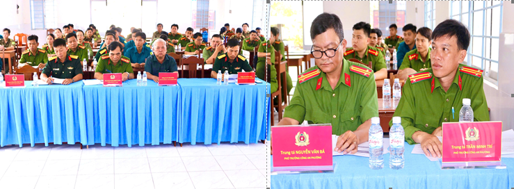Tại Hội nghị, đồng chí Sơn Minh Chiến, Trưởng Công an phường đã báo cáo kết quả phối hợp thực hiện nhiệm vụ bảo vệ an ninh quốc gia, bảo đảm trật tự, an toàn xã hội, đấu tranh phòng, chống tội phạm và nhiệm vụ quốc phòng tháng 3/2026 với nhiều kết quả nổi bật. Trong tháng, lực lượng Công an - Quân sự duy trì thực hiện tốt công tác phối hợp trao đổi 15 nguồn tin có liên quan đến công tác an ninh; đặc biệt là bảo vệ an toàn tuyệt đối cuộc bầu cử đại biểu Quốc hội khóa XVI và đại biểu Hội đồng nhân dân các cấp nhiệm kỳ 2026 - 2031 và công tác tuyển chọn gọi công dân nhập ngũ năm 2026. Tổ chức tư vấn hướng nghiệp tuyển sinh vào các Trường đại học Công an nhân dân, đại học Quân đội nhân dân năm 2026 cho 186 em học sinh khối lớp 12 Trường Trung học phổ thông Lê Văn Tám.
