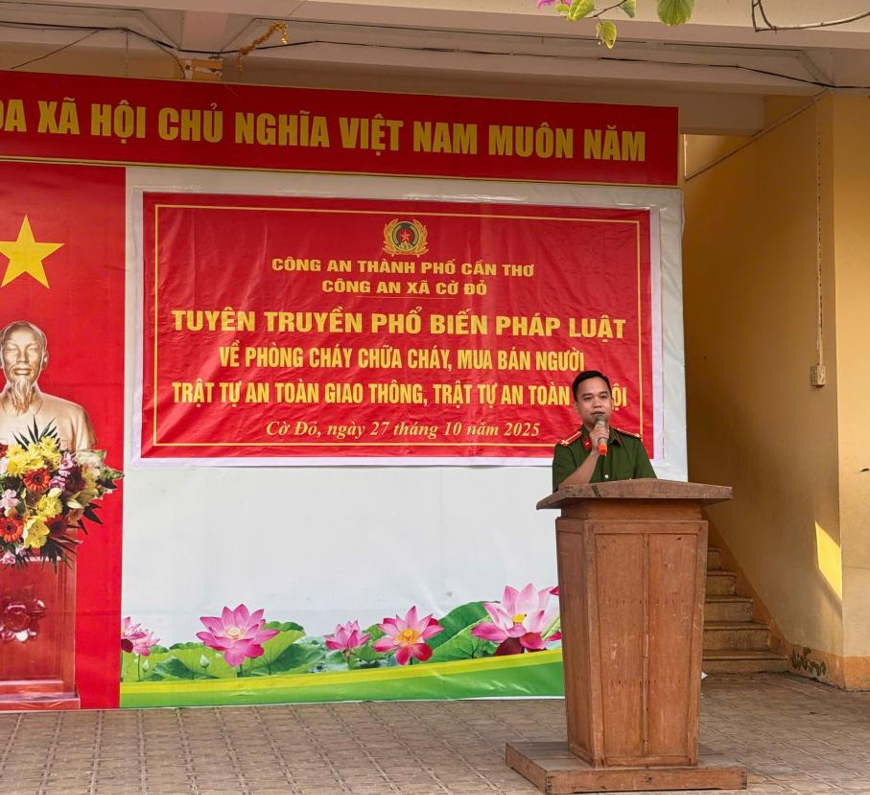 Tại Công an xã Cờ Đỏ, đơn vị phối hợp với Ban Giám hiệu Trường Trung học phổ thông (THPT) Hà Huy Giáp và Trường Trung học cơ sở (THCS) Cờ Đỏ tổ chức 02 buổi tuyên truyền vào đầu tháng 10, thu hút hơn2.200 học sinh tham gia. Nội dung tập trung vào an toàn giao thông đường bộ, phòng, chống ma túy, thuốc lá điện tử, các chất gây nghiện, phòng cháy chữa cháy, phòng chống mua bán người và các kỹ năng xử lý tình huống thực tiễn. Qua buổi tuyên truyền, học sinh được giao lưu, trao đổi và thực hành, nâng cao kiến thức, kỹ năng nhận biết và phòng tránh các nguy cơ trong cuộc sống.