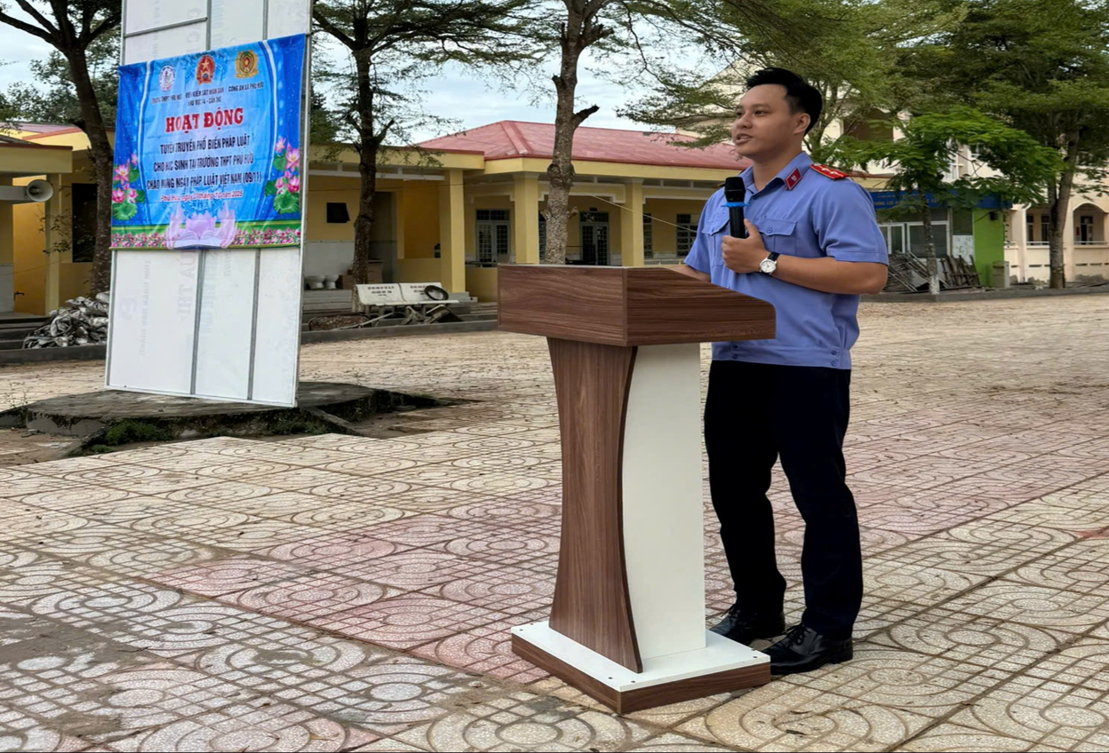 Tuyên truyền viên Viện Kiểm sát nhân dân khu vực 14 trình bày nội dung tuyên truyền tại xã Phú Hữu.