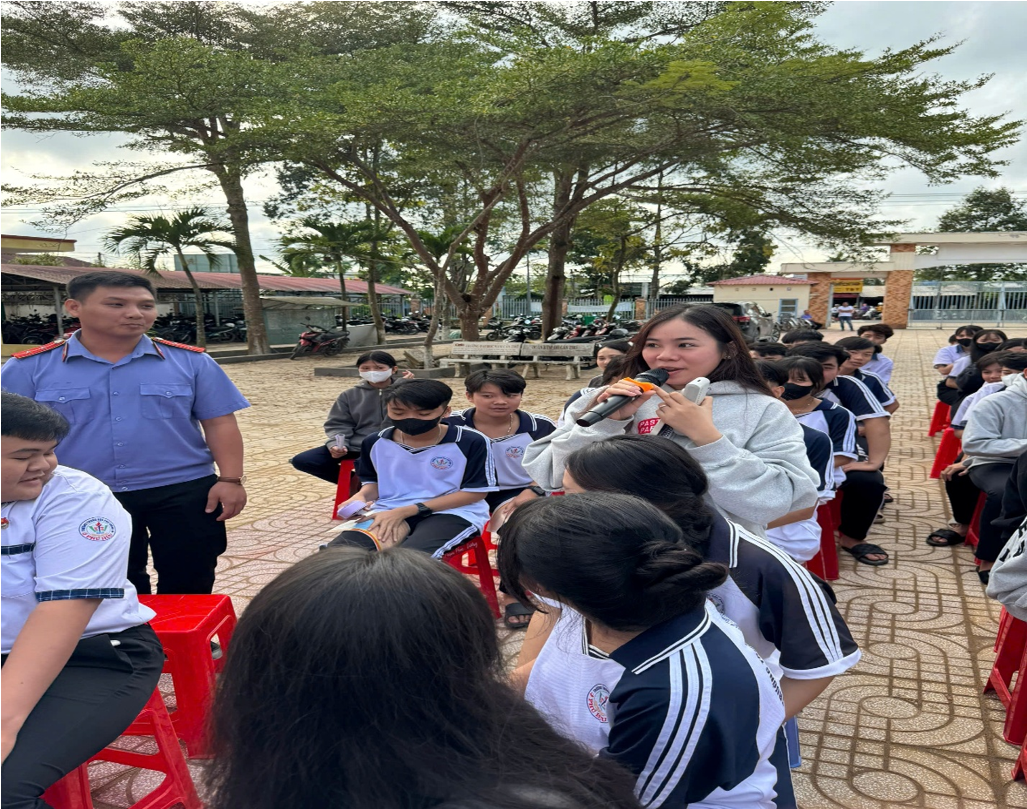Các em học sinh tại Trường Trung học phổ thông Hà Huy Giáp và Trường Trung học cơ sở Cờ Đỏ tích cực tham gia trao đổi các nội dung tuyên truyền