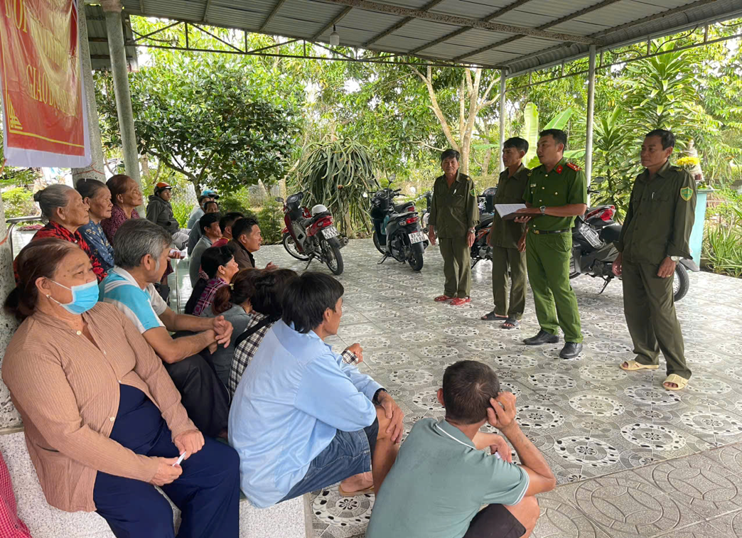 Lực lượng Công an xã Tân Phước Hưng hướng dẫn người dân cách nhận biết, xử lý tin nhắn, cuộc gọi và đường link lừa đảo trên mạng xã hội với phương châm “Đi từng ngõ, gõ từng nhà, rà từng hộ”.