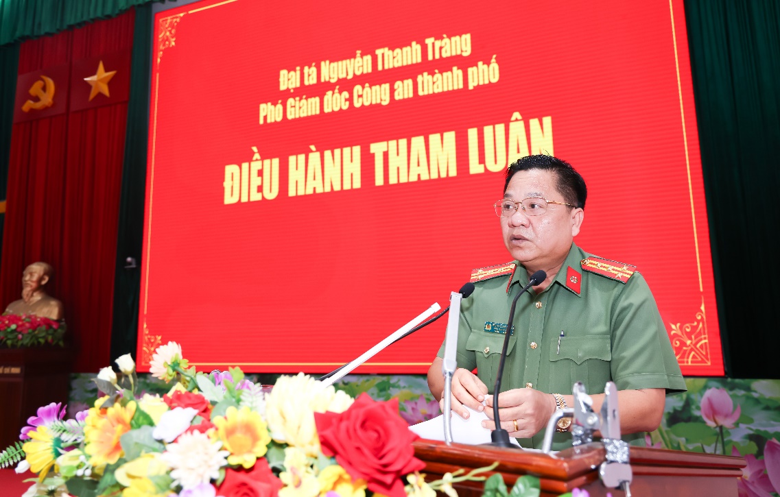 Phát biểu điều hành thảo luận, Đại tá Nguyễn Thanh Tràng, Ủy viên Ban Chấp hành Đảng bộ thành phố, Phó Bí thư Đảng ủy, Phó Giám đốc Công an thành phố đề nghị các đại biểu tham gia thảo luận bám sát tình hình, kết quả công tác Công an Quý III, 9 tháng đầu năm 2025 và phương hướng, nhiệm vụ Quý IV/2025; tập trung làm rõ những vấn đề nổi lên, rút ra bài học kinh nghiệm, đồng thời đề xuất các giải pháp thiết thực, hiệu quả nhằm thực hiện tốt nhiệm vụ bảo đảm an ninh, trật tự trên địa bàn thành phố trong thời gian tới.