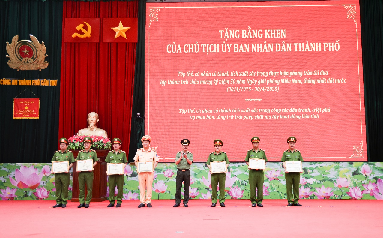 Thiếu tướng Huỳnh Việt Hòa, Ủy viên Ban Thường vụ Thành ủy, Bí thư Đảng ủy, Giám đốc Công an thành phốtrao Bằng khen của Ủy ban nhân dân thành phố cho tập thể, cá nhân có thành tích xuất sắc trong Phong trào thi đua lập thành tích chào mừng kỷ niệm 50 năm Ngày Giải phóng miền Nam, thống nhất đất nước (30/4/1975 – 30/4/2025) và công tác đấu tranh, triệt phá vụ mua bán, tàng trữ trái phép chất ma túy liên tỉnh.