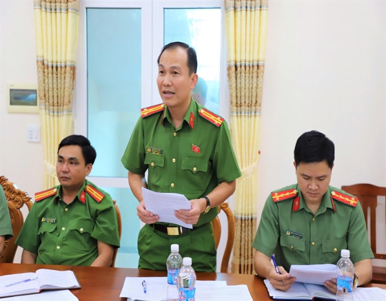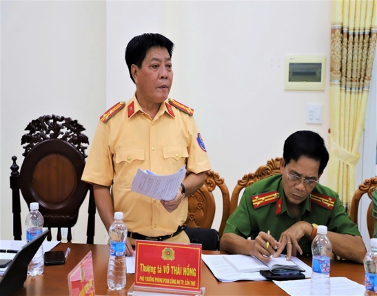 Đại tá Nguyễn Thanh Bình, Phó Giám đốc Công an thành phố Cần Thơ phát biểu chỉ đạo tại buổi làm việc tại Công an phường Ngã Bảy
