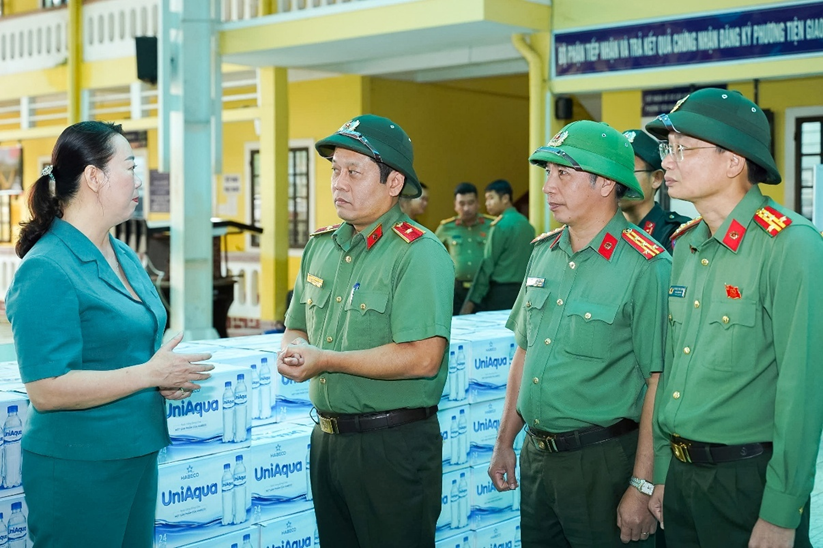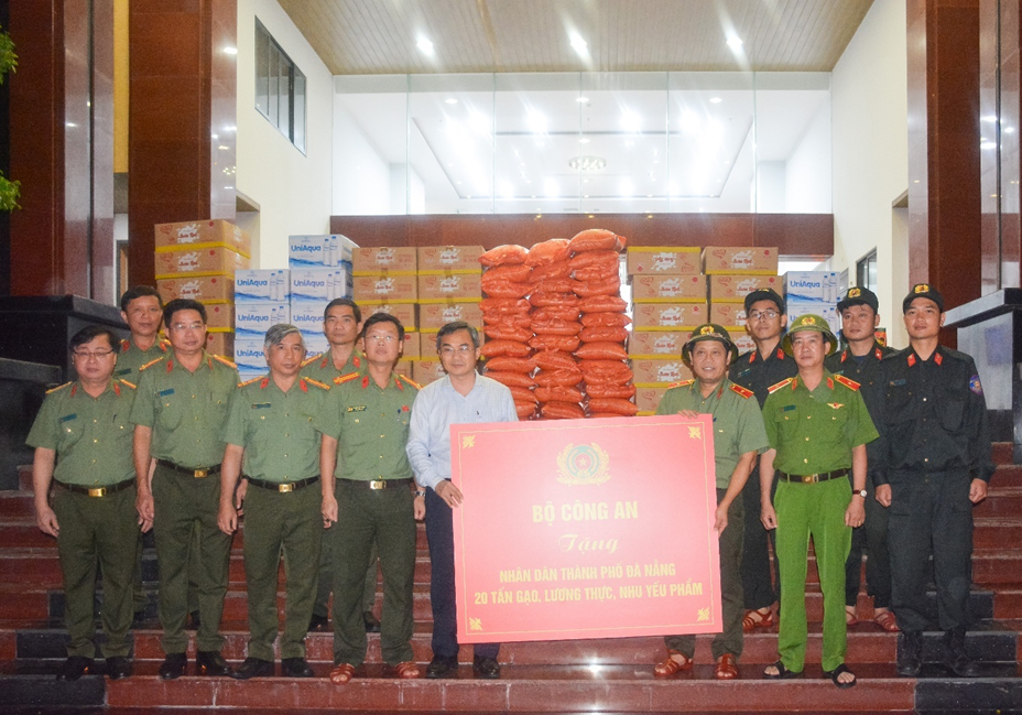 Cùng với thành phố Đà Nẵng, sáng 04/11, Đoàn công tác đã tổ chức tiếp ứng nhu yếu phẩm hỗ trợ Nhân dân thành phố Huế. Tổng số gần 100 tấn gạo, lương thực, nhu yếu phẩm, trong đó thành phố Đà Nẵng hơn 20 tấn và 1.000 thùng nước tinh khiết; thành phố Huế là 70 tấn và 1.000 thùng nước tinh khiết...Đây là đợt hỗ trợ thứ hai trong chương trình cứu trợ của Bộ Công an, thể hiện tinh thần “Vì Nhân dân phục vụ” sẻ chia khó khăn, đồng hành cùng bà con vùng lũ vượt qua giai đoạn khó khăn sau thiên tai.
