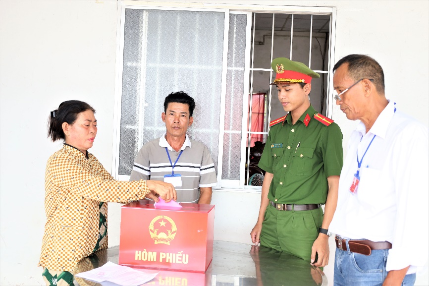 Ông Trần Quang Khanh, Bí thư chi bộ, Trưởng ấp 10A, xã Vị Thủy, Tổ trưởng tổ bầu cử tại đây không giấu được sự hài lòng khi nói về các chiến sỹ Công an được tăng cường về địa phương. Theo ông Khanh, các đồng chí Công an rất năng nổ, nhiệt tình, không ngại khó khăn. Các anh thực hiện ngủ nghỉ trực tiếp tại khu vực bỏ phiếu để canh gác, bảo vệ tài liệu bầu cử suốt đêm; cùng trang trí khánh tiết, dọn dẹp vệ sinh khu vực bỏ phiếu để lễ khai mạc diễn ra trang trọng, đúng giờ. Nhờ sự hỗ trợ sát sao này mà tình hình an ninh tại ấp 10A rất ổn định, bà con cử tri đi bầu rất đúng giờ và đạt tỷ lệ cao.