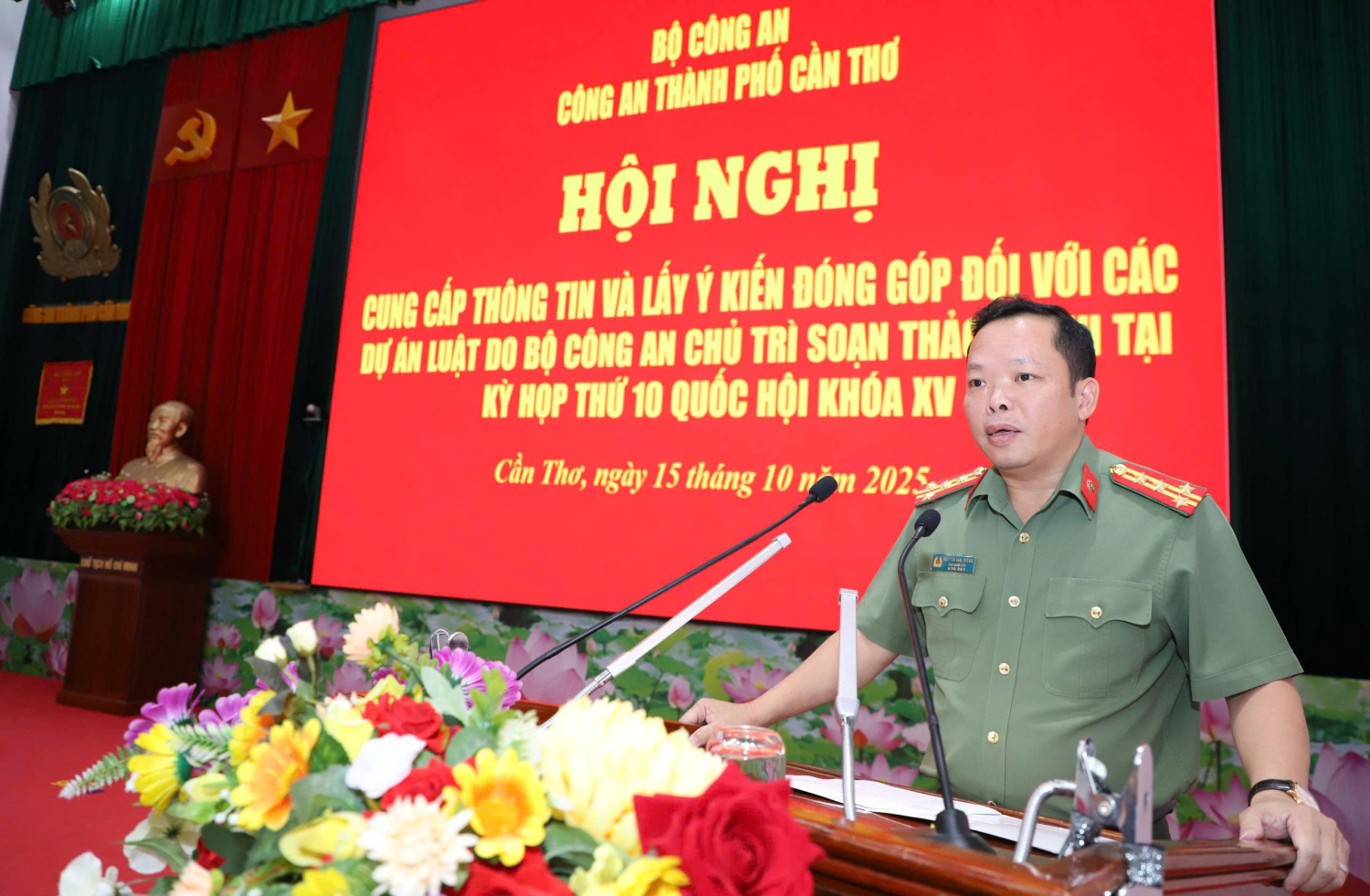 Công an thành phố Cần Thơ tổ chức Hội nghị cung cấp thông tin, lấy ý kiến đóng góp 11 dự án Luật, Pháp lệnh do Bộ Công an chủ trì soạn thảo, trình Quốc hội khóa XV tại Kỳ họp thứ 10