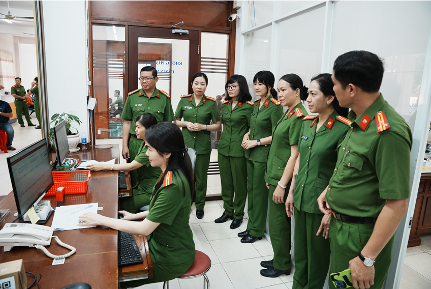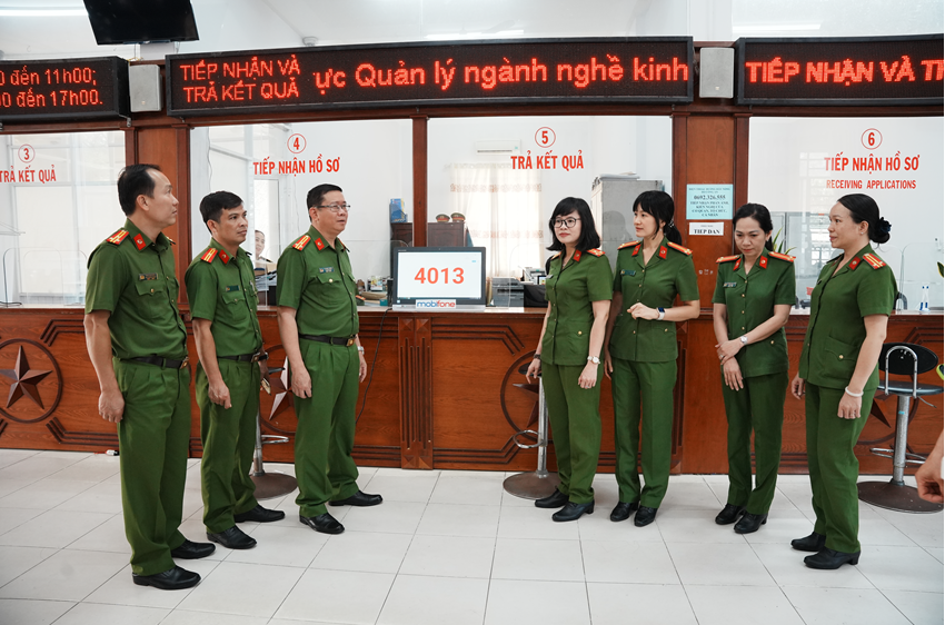 Sau phần làm việc tại hội trường, đoàn đã trực tiếp tham quan, trao đổi thực tế tại các đội nghiệp vụ và Bộ phận tiếp nhận, trả kết quả giải quyết thủ tục hành chính của Công an thành phố, qua đó làm rõ hơn các nội dung nghiệp vụ gắn với tình hình thực tiễn tại cơ sở.