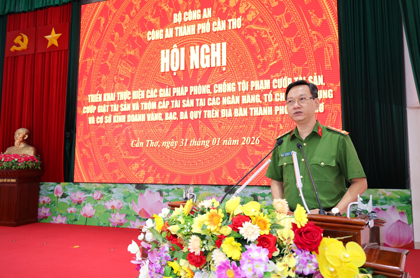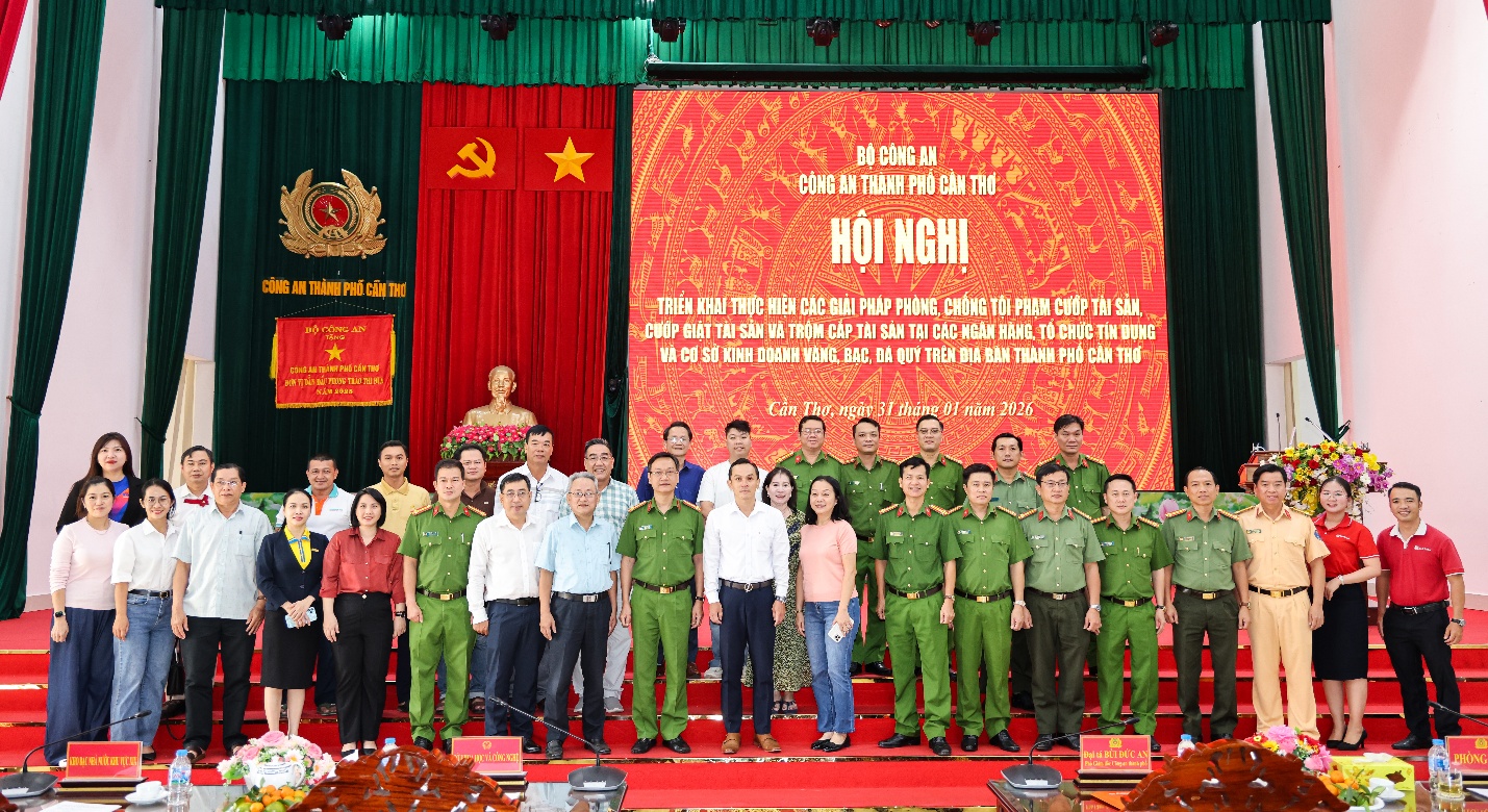Chiều ngày 31/01, Công an thành phố Cần Thơ tổ chức Hội nghị triển khai thực hiện các giải pháp phòng, chống tội phạm cướp tài sản, cướp giật tài sản, trộm cắp tài sản tại các ngân hàng, tổ chức tín dụng và cơ sở kinh doanh vàng, bạc, đá quý trên địa bàn thành phố Cần Thơ.
