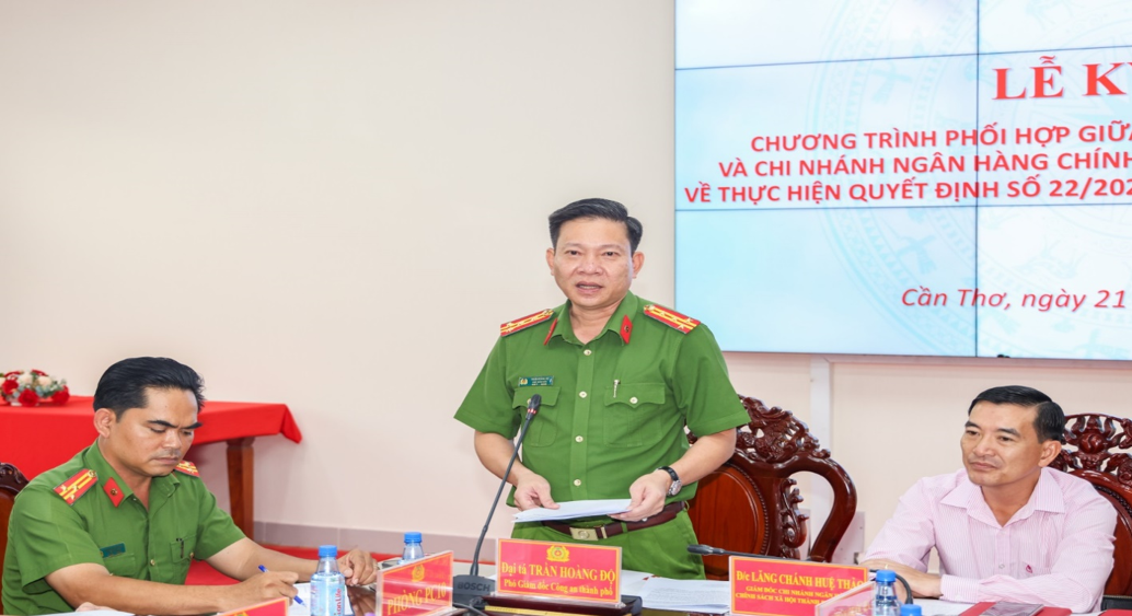Công an thành phố Cần Thơ và Chi nhánh Ngân hàng Chính sách xã hội thành phố Cần Thơ ký kết Chương trình phối hợp thực hiện Quyết định số 22/2023/QĐ-TTg ngày 17/8/2023 của Thủ tướng Chính phủ