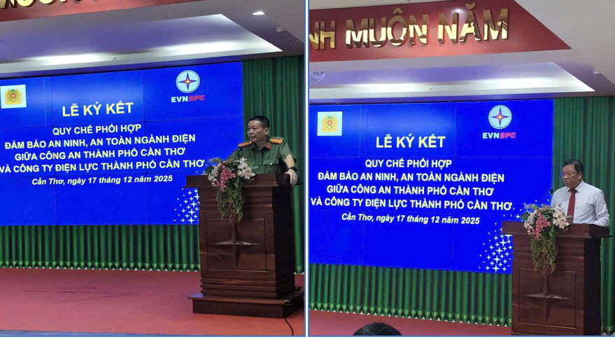 Tuy nhiên, trong bối cảnh phát triển kinh tế xã hội, quá trình đô thị hóa ngày càng nhanh, nhu cầu sử dụng điện tăng cao; tình hình kinh tế, chính trị, xã hội có nhiều chuyển biến; âm mưu, hoạt động phá hoại của các thế lực thù địch và các loại tội phạm ngày càng tinh vi, nguy hiểm; đặc biệt là tội phạm sử dụng công nghệ cao, tội phạm phá hoại cơ sở vật chất kỹ thuật các công trình quan trọng; hoạt động kích động người dân khiếu nại, khiếu kiện, tập trung đông người gây rối an ninh, trật tự có xu hướng gia tăng. Do vậy, việc đảm bảo an ninh, an toàn ngành điện trên địa bàn thành phố Cần Thơ là hết sức cần thiết và có ý nghĩa đặc biệt quan trọng. Sau thời gian phối hợp khẩn trương, nổ lực chuẩn bị. Vào chiều ngày 17/12/2025 tại Hội trường Công ty điện lực thành phố Cần Thơ đã long trọng diễn ra Lễ ký kết Quy chế phối hợp giữa ngành Công an và Công ty điện lực thành phố Cần Thơ về “Đảm bảo an ninh, an toàn ngành điện trên địa bàn thành phố Cần Thơ”. Tham dự và chủ trì buổi lễ có đồng chí Đại tá Vũ Thành Thức - Uỷ viên Ban Thường vụ Đảng uỷ, Phó Giám đốc Công an thành phố và ông Lê Hoàng Thắng - Giám đốc Công ty điện lực thành phố Cần Thơ. Cùng tham dự buổi lễ còn có sự góp mặt của đại diện Lãnh đạo các đơn vị, phòng chức năng trực thuộc hai ngành và Công an phường Ninh Kiều. Theo nội dung Quy chế, Công an thành phố và Công ty điện lực thành phố Cần Thơ sẽ tăng cường phối hợp trao đổi thông tin, tình hình liên quan đến an ninh, an toàn hệ thống điện; kịp thời phát hiện, ngăn chặn và xử lý các hành vi vi phạm pháp luật như trộm cắp, phá hoại công trình điện, sử dụng điện trái phép, cản trở thi công các dự án điện và các hành vi gây mất an ninh, trật tự khác; hai bên cũng thống nhất phối hợp xây dựng và triển khai các phương án bảo vệ an ninh, an toàn đối với các công trình điện trọng điểm, các tuyến đường dây và trạm biến áp; phối hợp xử lý, khắc phục các sự cố, thiên tai, cháy nổ; tổ chức tuần tra, kiểm tra, hướng dẫn Công an cấp xã, Đội quản lý điện và lực lượng bảo vệ cơ sở thực hiện tốt nhiệm vụ, chủ động phòng ngừa, không để xảy ra vụ việc phức tạp, tình huống bị động, bất ngờ. Bên cạnh đó, công tác tuyên truyền, phổ biến pháp luật về bảo vệ công trình điện và hành lang an toàn lưới điện cao áp cũng sẽ được đẩy mạnh, duy trì tổ chức thường xuyên, đa dạng hình thức, góp phần nâng cao nhận thức, ý thức chấp hành pháp luật của người dân, doanh nghiệp và các tổ chức liên quan.