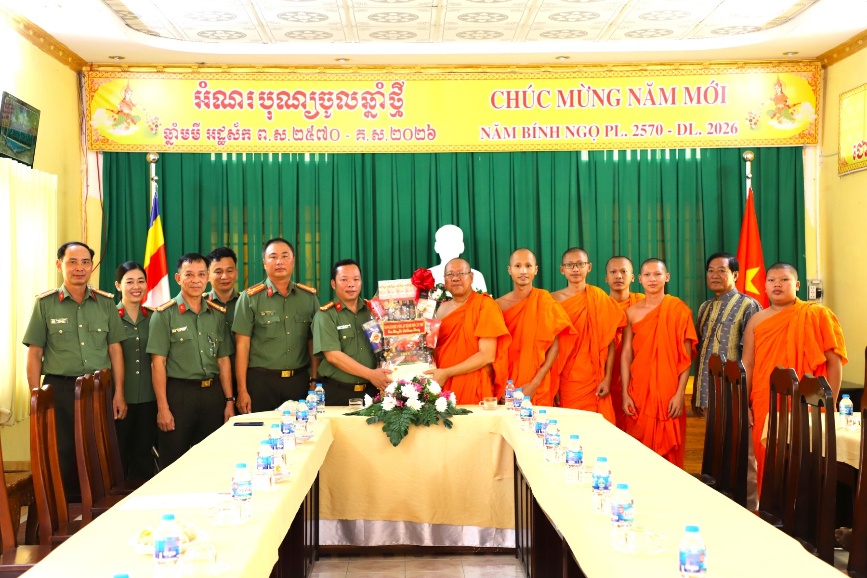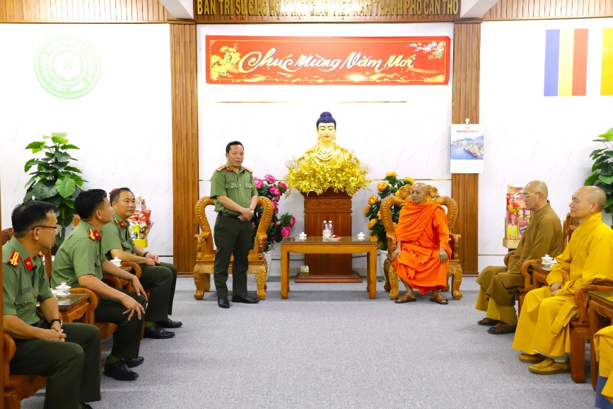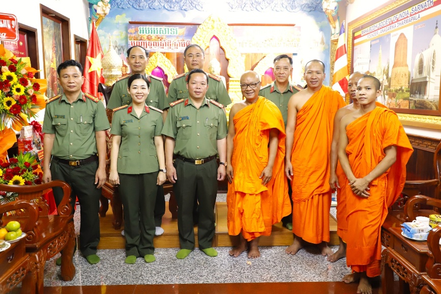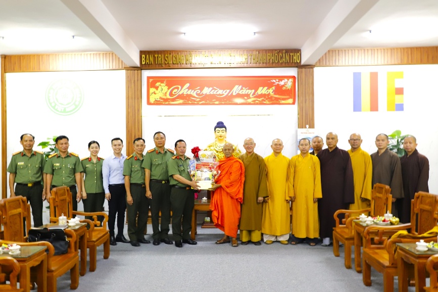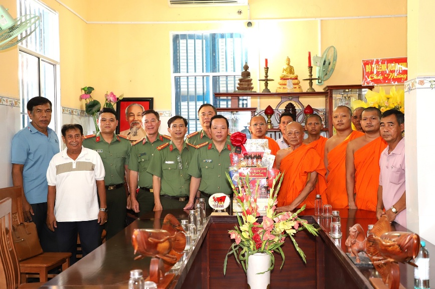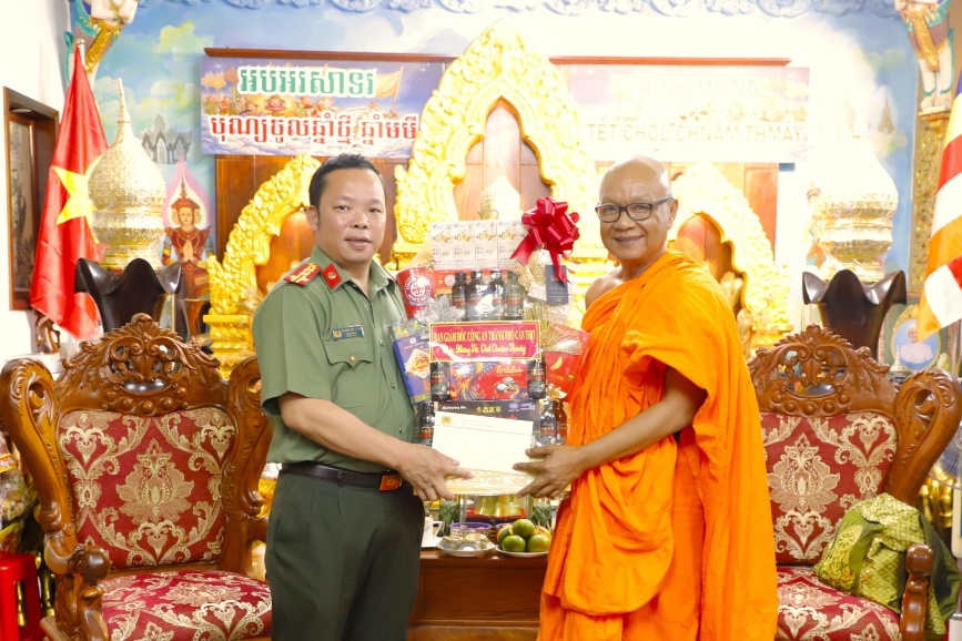 Đoàn đã đến thăm, chúc Tết cổ truyền đối với Hòa thượng Đào Như, Phó Chủ tịch Hội đồng Trị sự GHPGVN, Trưởng Ban Trị sự TP Cần Thơ; Hòa thượng Tăng Nô, Phó Pháp chủ Hội đồng Chứng minh, Chứng minh Ban Trị sự, Hội trưởng Hội ĐKSSYN TP Cần Thơ, Trụ trì Chùa Kh’leang; Hòa thượng Lý Hùng, Phó Trưởng Ban trị sự, Trụ trì chùa Pitu Khôsa Răngsây; Hòa thượng Trần Sone, Trụ trì chùa Muni Ransay. Tại các điểm đến, Đại tá Nguyễn Văn Thắng, Phó Giám đốc Công an thành phố chúc các vị chức sắc, sư sãi, Achar, Ban Quản trị các chùa cùng đồng bào dân tộc Khmer đón Tết cổ truyền Chôl Chnăm Thmây vui tươi, đầm ấm. Đồng thời ghi nhận sự đóng góp của quý sư sãi, Achar, Ban Quản trị, người có uy tín trong công tác tuyên truyền, vận động bà con thực hiện tốt chủ trương của Đảng, chính sách pháp luật của Nhà nước, xây dựng hiệu quả phong trào toàn dân bảo vệ an ninh Tổ quốc, nhất là từ khi triển khai thực hiện chính quyền địa phương hai cấp cho đến nay.