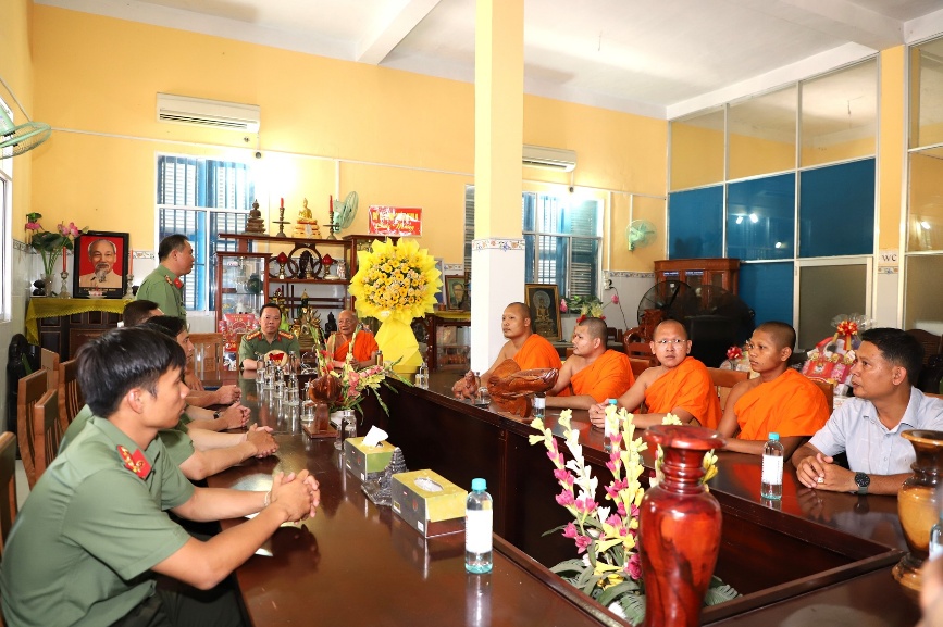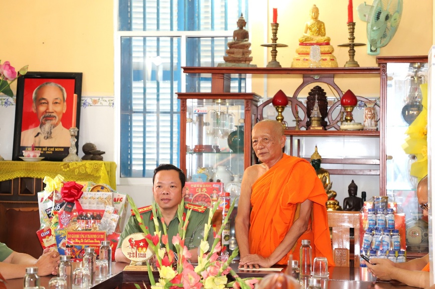 Lãnh đạo Công an thành phố thăm, chúc Tết cổ truyền Hòa thượng Trần Sone tại chùa Muni Ransay