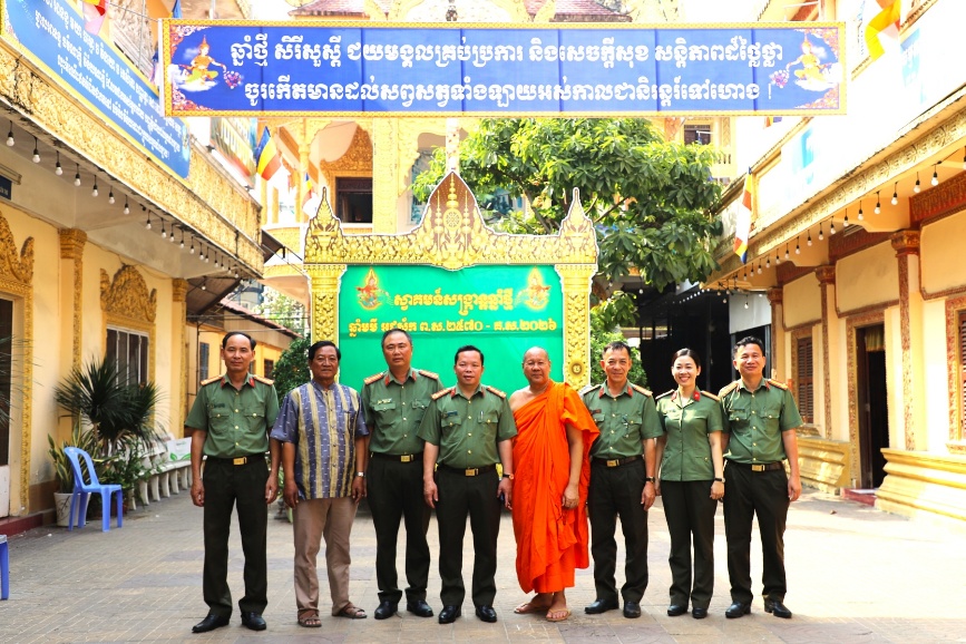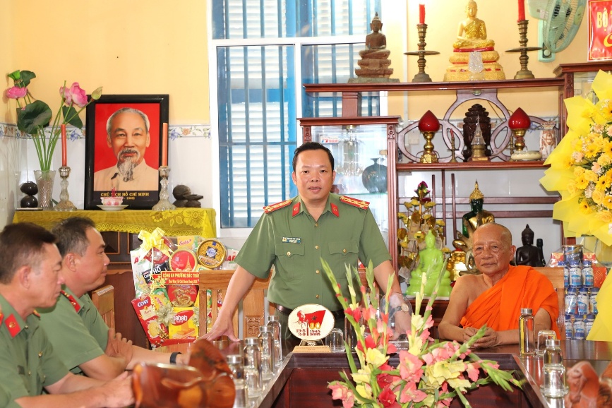 Lãnh đạo Công an thành phố thăm, chúc Tết cổ truyền Hòa thượng Lý Hùng tại chùa Pitu Khôsa Răngsây