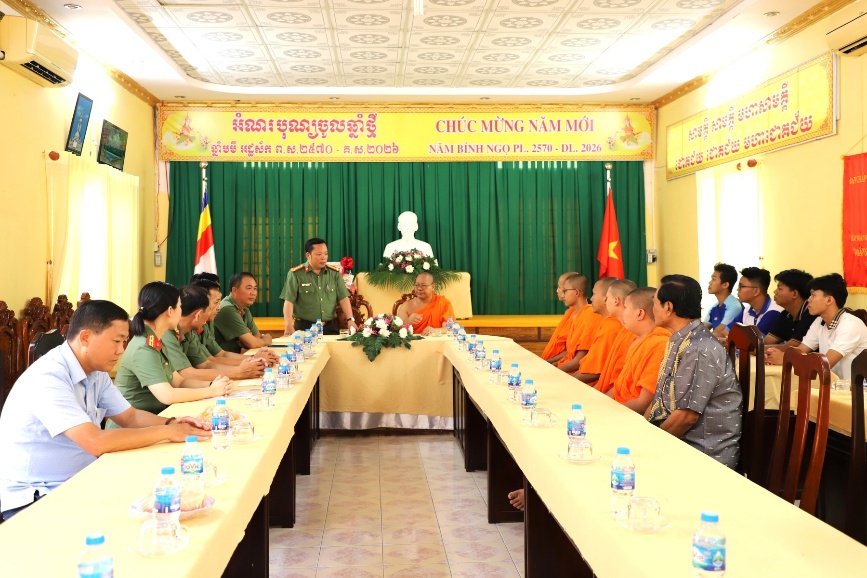 Đồng chí Phó Giám đốc Công an thành phố mong muốn quý sư sãi, Achar, Ban Quản trị, người có uy tín tiếp tục phát huy truyền thống đại đoàn kết toàn dân tộc; tích cực hưởng ứng các phong trào thi đua yêu nước; nâng cao ý thức cảnh giác, chống âm mưu “diễn biến hòa bình” của các thế lực thù địch, góp phần giữ vững ổn định tình hình an ninh chính trị, trật tự an toàn xã hội trên địa bàn thành phố trong giai đoạn mới.
