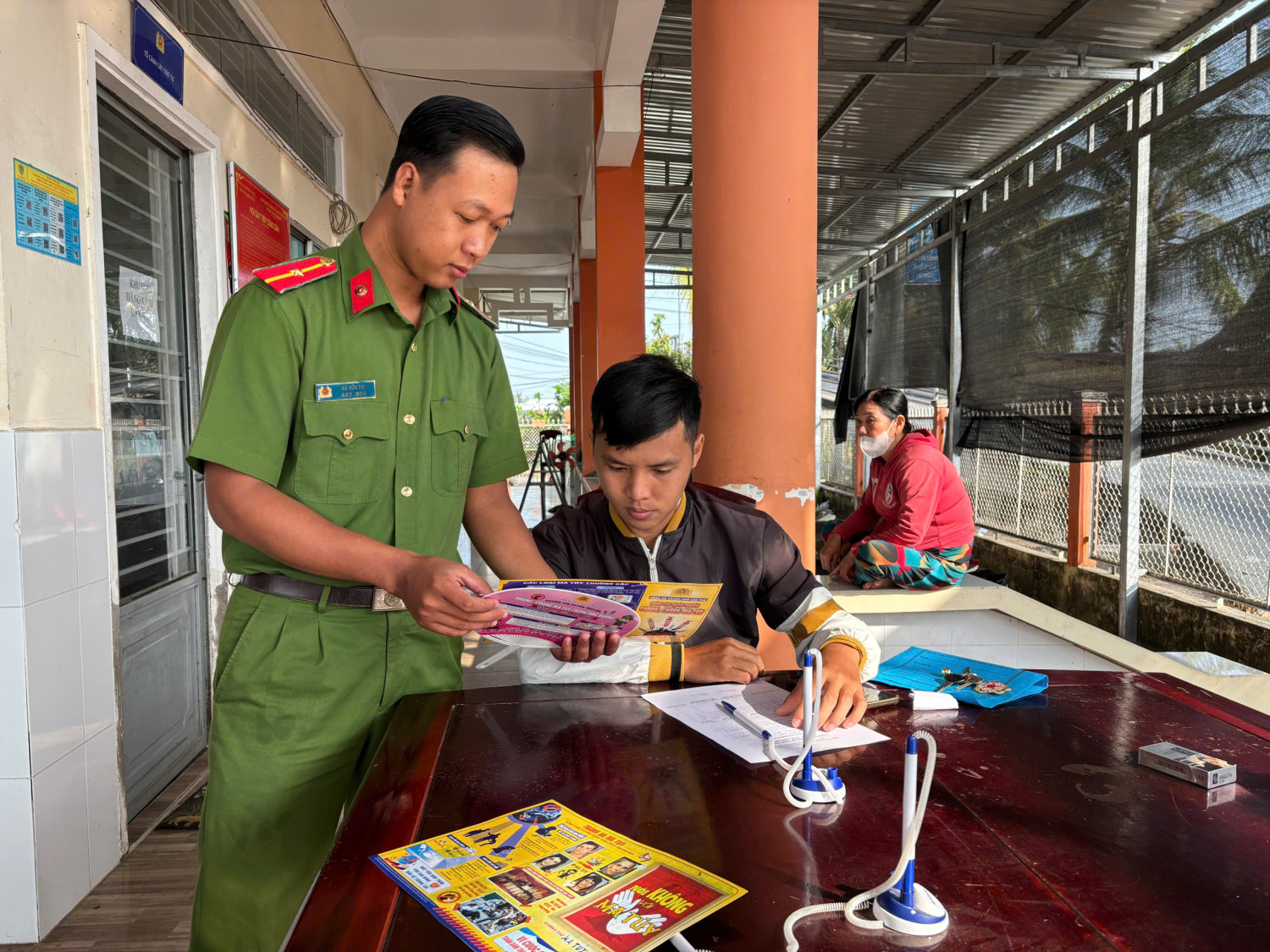 Cán bộ Công an xã Đông Thuận thực hiện tuyên truyền phòng chống tội phạm cho người dân đến giải quyết thủ tục hành chính