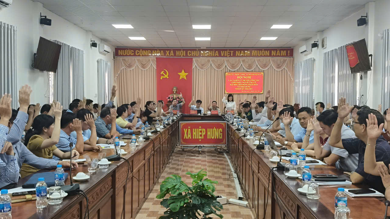 Thực hiện Kế hoạch của Đảng ủy xã Hiệp Hưng về lãnh đạo, chỉ đạo công tác bầu cử đại biểu Quốc hội khóa XVI và bầu cử đại biểu Hội đồng nhân dân các cấp, nhiệm kỳ 2026 – 2031 trên địa bàn xã Hiệp Hưng, ngày 15/01/2026, tại Hội trường Ủy ban nhân dân xã Hiệp Hưng, Ban Thường vụ Đảng ủy xã đã tổ chức Hội nghị liên tịch lấy ý kiến nhận xét và tín nhiệm của cử tri nơi công tác đối với người được dự kiến giới thiệu ứng cử đại biểu Hội đồng nhân dân xã nhiệm kỳ 2026 – 2031. Đồng chí Võ Quốc Sử, Bí thư Đảng ủy xã, chủ trì Hội nghị.