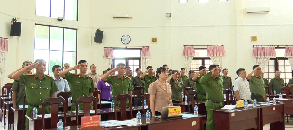 Ảnh: Đồng chí Thượng tá Nguyễn Hoàng Ba, Trưởng Công an xã tiếp thu ý kiến chỉ đạo tại Hội nghị