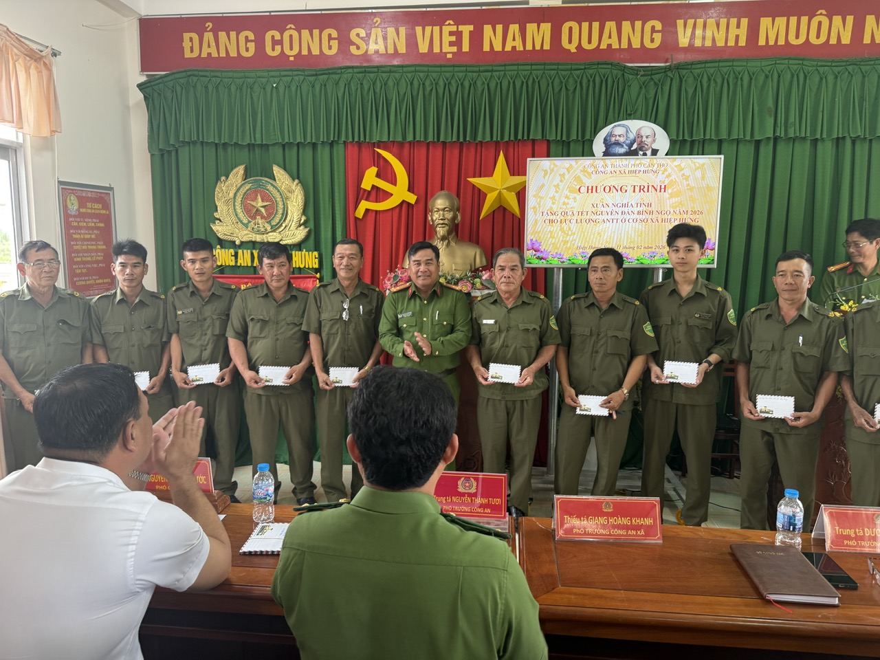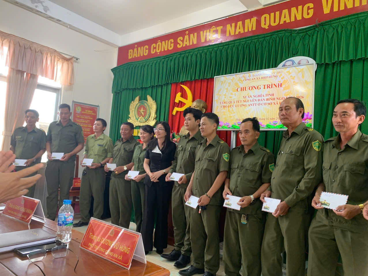 Hòa trong không khí vui tươi “Mừng Đảng quang vinh – Mừng Xuân Bính Ngọ năm 2026”. Được sự thống nhất của Thường trục Đảng ủy – UBND xã, ngày 16/02/2026, Công an xã Hiệp Hưng tổ chức họp mặt tặng quà lực lượng tham gia bảo vệ an ninh, trật tự ở cơ sở trên địa bàn. Tham dự buổi họp mặt có đồng chí Thượng tá Nguyễn Hoàng Ba, Trưởng Công an xã, đại diện lãnh đạo Phòng Văn hóa xã và lực lượng tham gia bảo vệ an ninh, trật tự cơ sở của 19 ấp trên địa bàn cùng tham dự. Tại buổi họp mặt, đồng chí Trưởng Công an xã đã thay mặt Ban Chỉ huy Công an xã gửi lời cảm ơn và ghi nhận những thành tích nổi bật của lực lượng tham gia bảo vệ an ninh, trật tự ở cơ sở với những đóng góp tích cực, nhiệt huyết trong công tác phòng, chống tội phạm và giữ gìn an ninh, trật tự tại cơ sở. Thời gian tới, các loại tội phạm và thế lực thù địch sẽ hoạt động với các thủ đoạn ngày càng tinh vi, yêu cầu công tác bảo đảm an ninh, trật tự ngày càng cao, Chỉ huy Công an xã mong muốn lực lượng tham gia bảo vệ an ninh, trật tự ở cơ sở tiếp tục phát huy hơn nữa vai trò, đóng góp tích cực cùng với Công an xã thực hiện tốt nhiệm vụ bảo đảm an ninh, trật tự tại địa phương. Nhân dịp này, Công an xã đã tặng cho mỗi Tổ bảo vệ an ninh trật tự ở cơ sở một phần quà trị giá 500.000 đồng. Đây là phần quà mang một ý nghĩa động viên, khích lệ lực lượng tiếp tục tham gia hỗ trợ cho Công an xã trong công tác bảo đảm an ninh, trật tự tại địa phương. Song song đó, Công an xã tổ chức bữa cơm thân mật cùng lực lượng tham gia bảo vệ an ninh, trật tự ở cơ sở thể hiện sự quan tâm của Ban Chỉ huy Công an xã đối với lực lượng tham gia bảo vệ an ninh, trật tự ở cơ sở trên địa bàn.