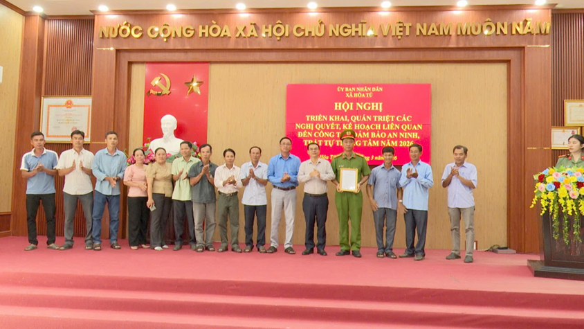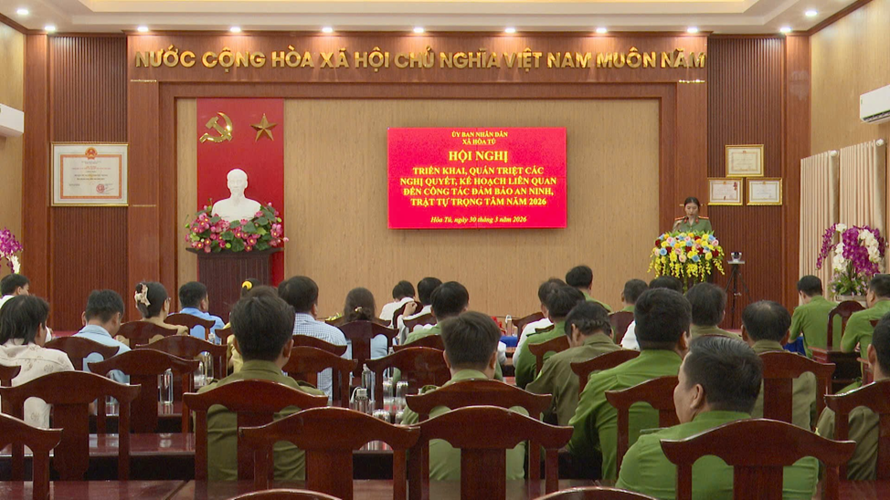 Ngày 30/3/2026, Công an xã Hòa Tú tổ chức triển khai, quán triệt các Nghị quyết, Kế hoạch trọng tâm về công tác bảo đảm an ninh, trật tự năm 2026. Tham dự có đồng chí Phạm Ngọc Huệ, Bí thư Đảng ủy, Chủ tịch Hội đồng nhân dân xã; đồng chí Quách Ngọc Hiểu, Phó Bí thư Đảng ủy, Chủ tịch Ủy ban nhân dân xã.
