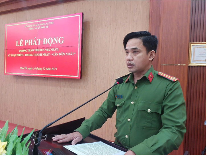Ngày 16/12/2025, Công an xã Hòa Tú, thành phố Cần Thơ tổ chức Lễ phát động phong trào thi đua “Ba nhất: Kỷ luật nhất - Trung thành nhất - Gần dân nhất” và ký kết giao ước thi đua trong toàn thể cán bộ, chiến sĩ. Đến dự buổi lễ có đồng chí Nguyễn Quí Đức, Phó Bí thư Thường trực Đảng ủy, Chủ nhiệm Ủy ban kiểm tra Đảng ủy xã Hoà Tú; đồng chí Quách Ngọc Hiểu, Phó Bí thư Đảng ủy, Chủ tịch Ủy ban nhân dân xã. Tham dự buổi lễ còn có tập thể chỉ huy cùng toàn thể cán bộ, chiến sĩ Công an xã Hòa Tú. Trung tá Bùi Công Thức – Trưởng Công an xã Hòa Tú chủ trì buổi lễ.