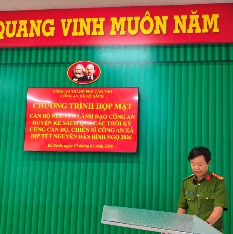 Phát biểu tại chương trình, đồng chí Trung tá Lý Thanh Sang, Trưởng Công an xã bày tỏ sự trân trọng, biết ơn đối với những đóng góp quý báu của các thế hệ lãnh đạo đi trước; đồng thời khẳng định những kết quả đạt được hôm nay là sự kế thừa truyền thống, kinh nghiệm và tinh thần trách nhiệm mà các thế hệ cán bộ Công an Kế Sách đã dày công xây dựng. Trên cơ sở đó, tập thể đơn vị quyết tâm trong năm 2026 tiếp tục siết chặt kỷ luật, kỷ cương, chủ động nắm chắc tình hình, kéo giảm tội phạm, đẩy mạnh phong trào toàn dân bảo vệ an ninh Tổ quốc gắn với phong trào thi đua “Ba Nhất: Kỷ luật nhất - Trung thành nhất - Gần dân nhất”, góp phần phục vụ hiệu quả nhiệm vụ phát triển kinh tế - xã hội tại địa phương.