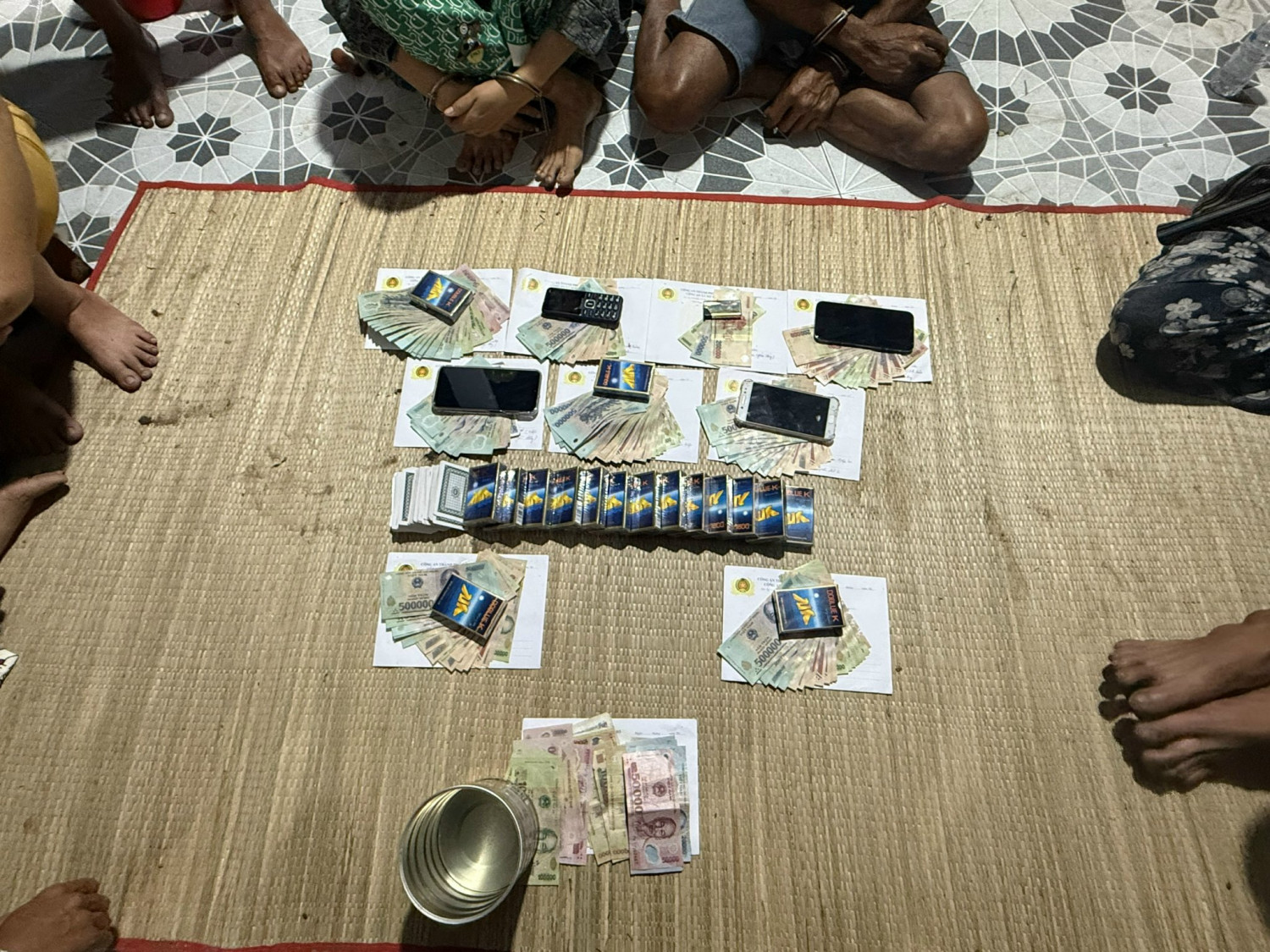 Tại hiện trường, Công an xã thu giữ 15 bộ bài tây chưa qua sử dụng, 117 lá bài tây đã qua sử dụng, 01 chiếu lát, 04 điện thoại di động và số tiền Việt Nam khoảng 59 triệu đồng cùng các tang vật khác có liên quan. Qua đấu tranh, các đối tượng đã thừa nhận hành vi đánh bạc trái phép tại địa điểm trên. Công an xã Mỹ Hương đang tiếp tục củng cố hồ sơ để xử lý theo quy định của pháp luật./.