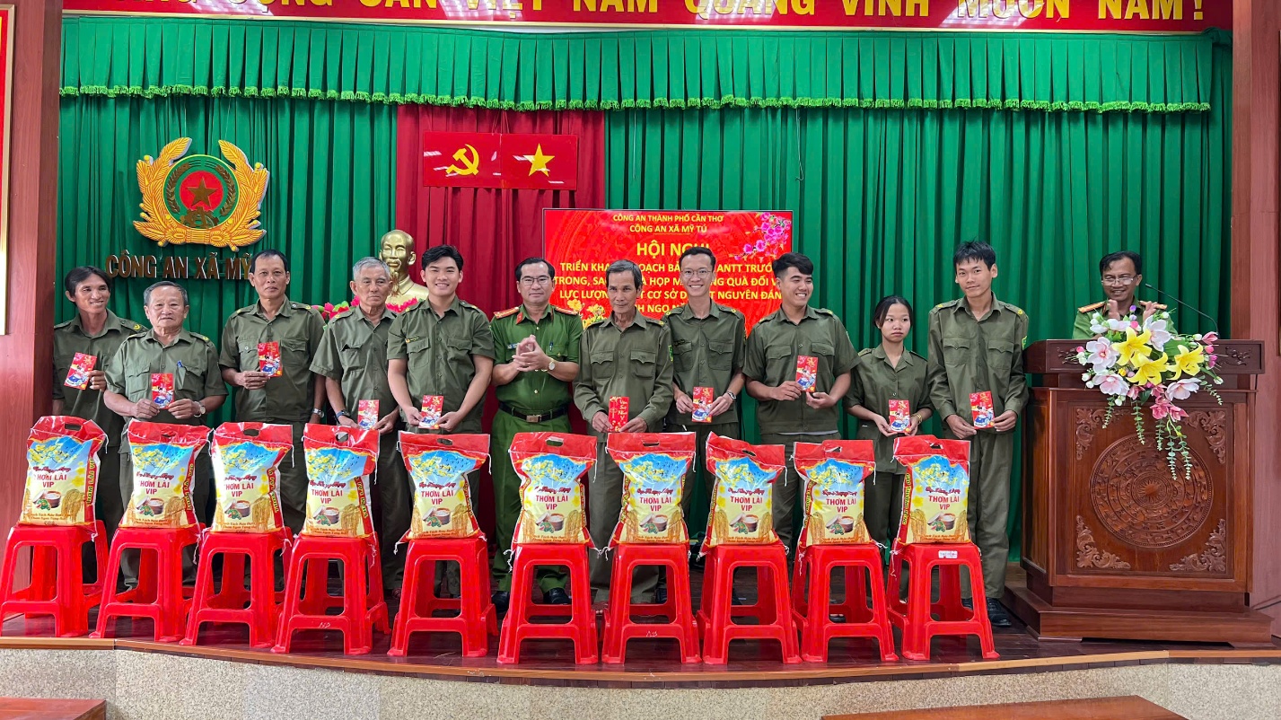 Nhân dịp đón Xuân Bính Ngọ năm 2026, Công an xã Mỹ Tú tổ chức buổi họp mặt chúc Tết và trao quà cho lực lượng tham gia bảo vệ an ninh, trật tự ở cơ sở, thể hiện sự quan tâm, động viên kịp thời đối với lực lượng nòng cốt đang ngày đêm hỗ trợ giữ gìn bình yên địa bàn.