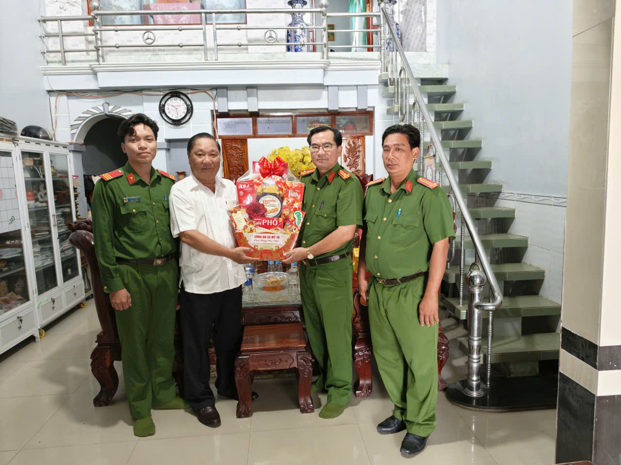 Đoàn công tác do đồng chí Thượng tá Mạch Dĩ Nhiên, Trưởng Công an xã và Trung tá Lê Tuấn Anh, Phó Trưởng Công an xã làm trưởng đoàn đã đến thăm, chúc Tết đồng chí Huỳnh Thiên Tư, nguyên Trưởng Công an huyện Mỹ Tú, nguyên Phó Bí thư Thường trực Huyện ủy Mỹ Tú; đồng chí Trần Thanh Phú, nguyên Trưởng Công an thị xã Ngã Năm cùng một số đồng chí nguyên lãnh đạo khác.