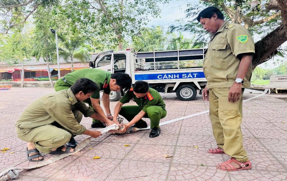 Lực lượng Công an xã chuẩn bị công tác phòng cháy, chữa cháy
