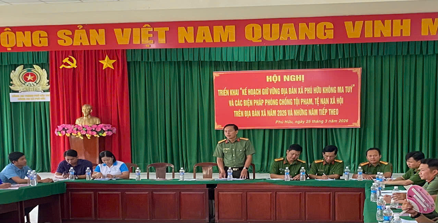 Năm 2025, cùng với sự quyết tâm của cả hệ thống chính trị và sự ủng hộ của quần chúng nhân dân, xã Phú Hữu được Ủy ban nhân dân thành phố công nhận xã đạt tiêu chí “Xã không ma túy”. Phát huy kết quả đạt được, trên cơ sở Kế hoạch số 41/KH-UBND ngày 27/01/2026 của Ủy ban nhân dân thành phố Cần Thơ về xây dựng xã, phường không ma túy năm 2026 trên địa bàn thành phố Cần Thơ. Ngày 25/03/2026, Công an xã Phú Hữu tổ chức Hội nghị triển khai “Kế hoạch giữ vững địa bàn xã Phú Hữu không ma túy” và các biện pháp phòng, chống tội phạm, tệ nạn xã hội trên địa bàn xã năm 2026 và những năm thiếp theo. Hội nghị có sự tham dự của đồng chí Thượng tá Nguyễn Sỹ Hoàng, Trưởng Công an xã, cùng các đồng chí lãnh đạo Mặt trận Tổ quốc Việt Nam xã, chỉ huy, cán bộ, chiến sỹ Công an xã, Bí thư chi bộ ấp, Trưởng ấp và lực lượng bảo vệ ANTT ở cơ sở.