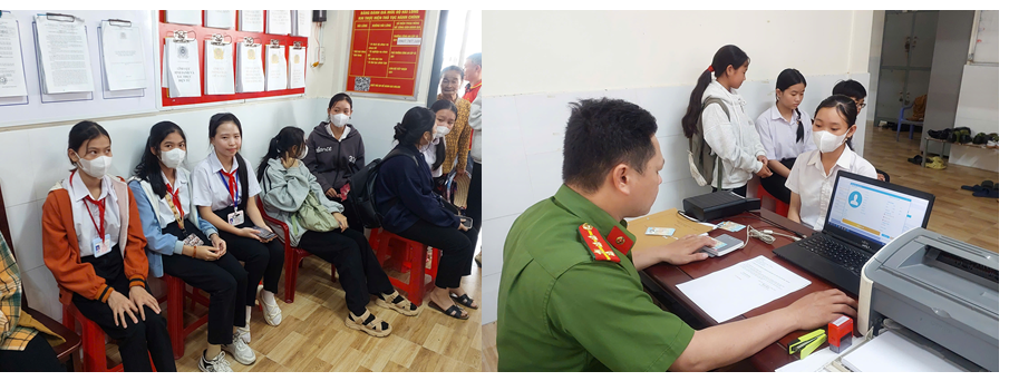 Công an xã Tân Bình thực hiện cấp định danh điện tử mức 2 cho học sinh