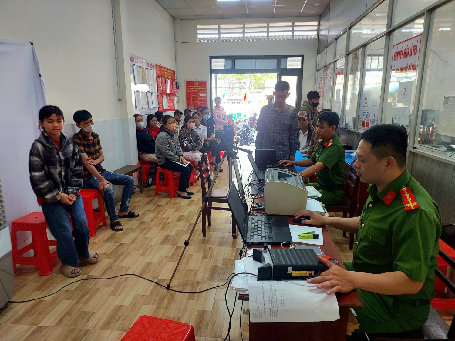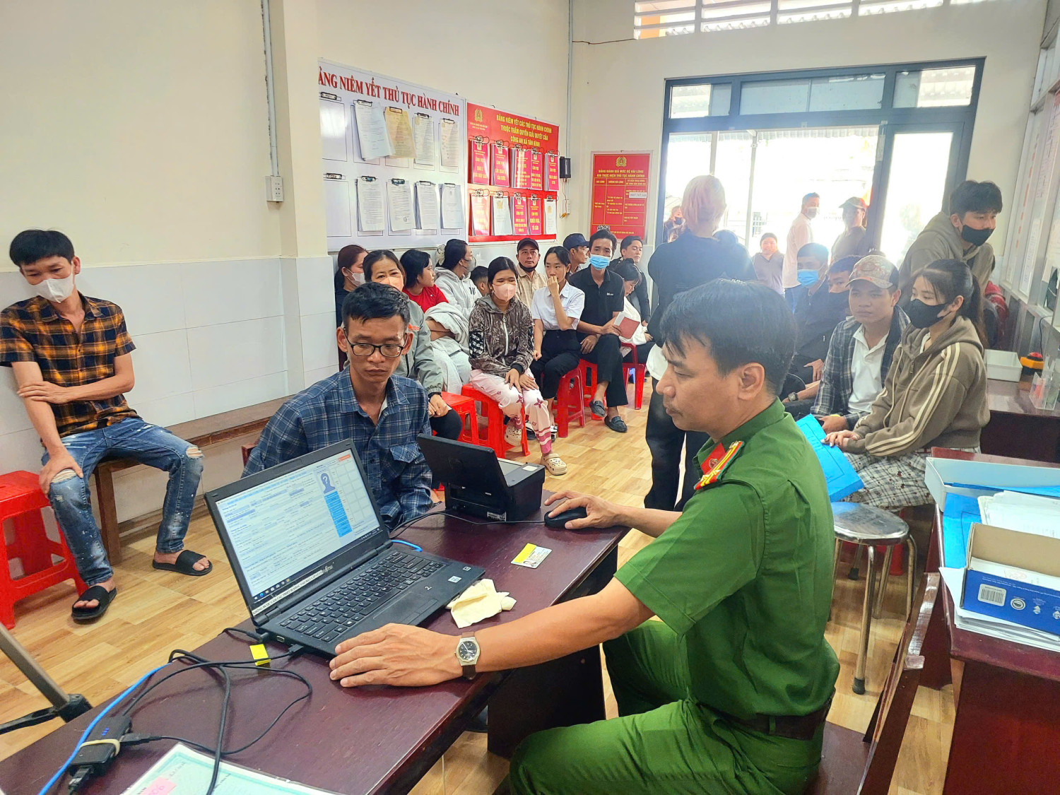 Hình ảnh người dân đến Công an xã Tân Bình thực hiện các thủ tục hành chính sau Tết nguyên đán Bình Ngọ 2026