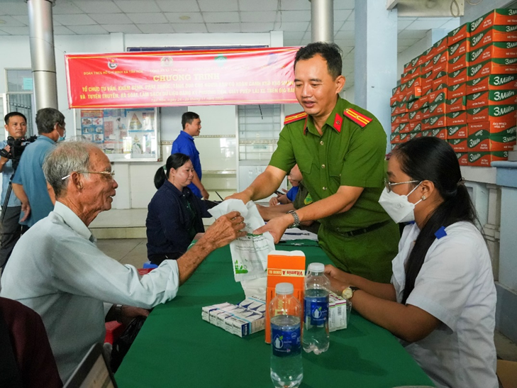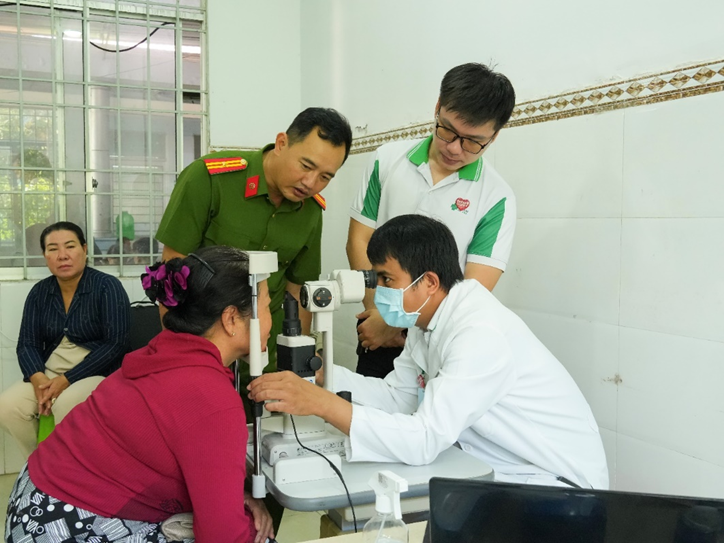 Công an xã Tân Hòa phối hợp Bệnh viện mắt Sài Gòn - Cần Thơ khám bệnh, phát thuốc miễn phí cho người dân