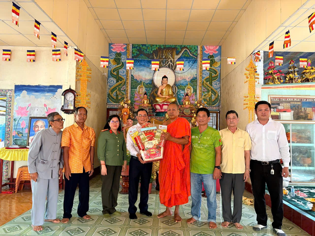 Công an xã Tân Hoà cùng Đoàn Công tác đến thăm, chúc mừng, tặng quà chức sắc tại chùa ThomMaRangSay và chùa KhemMaRangSay
