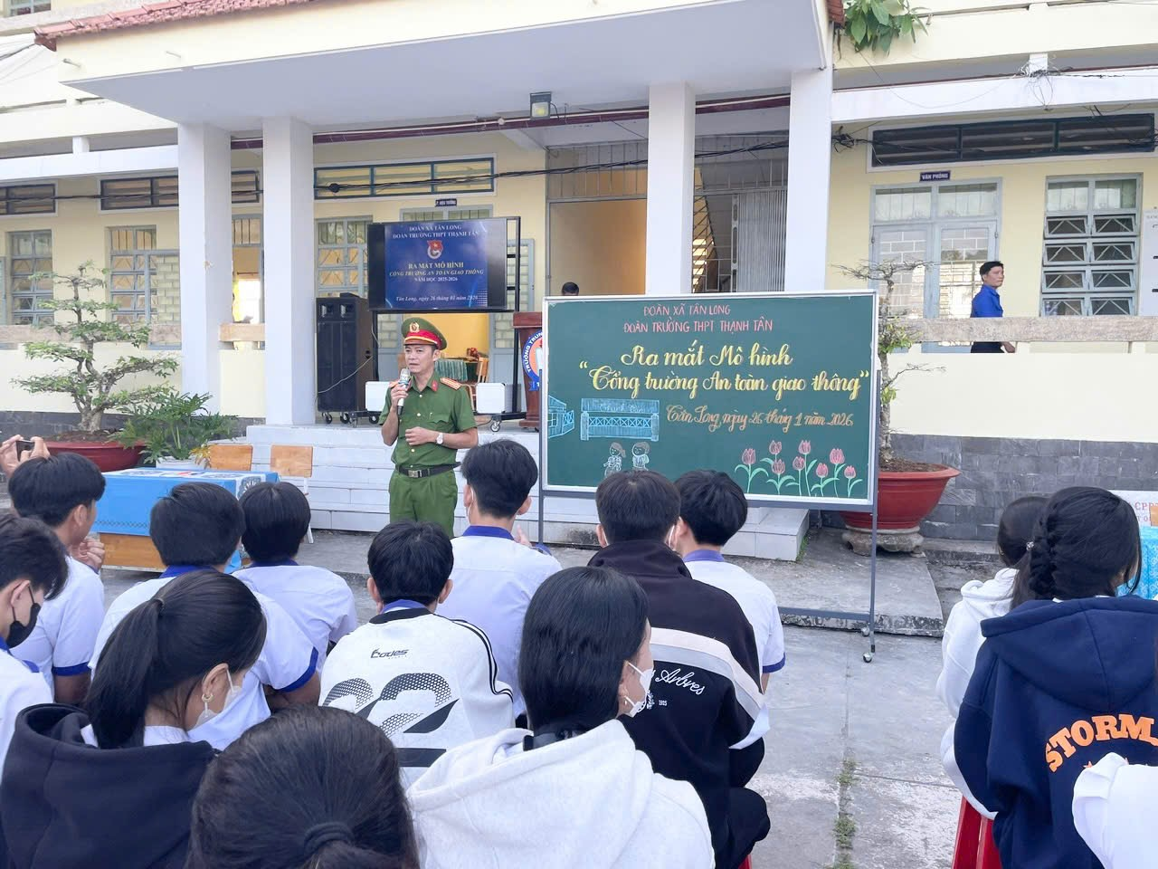 Công an xã Tân Long vừa phối hợp với Đoàn Trường THPT Thạnh Tân tổ chức lễ ra mắt mô hình “Cổng trường an toàn giao thông”, đồng thời đẩy mạnh công tác tuyên truyền pháp luật về trật tự an toàn giao thông cho học sinh nhà trường.