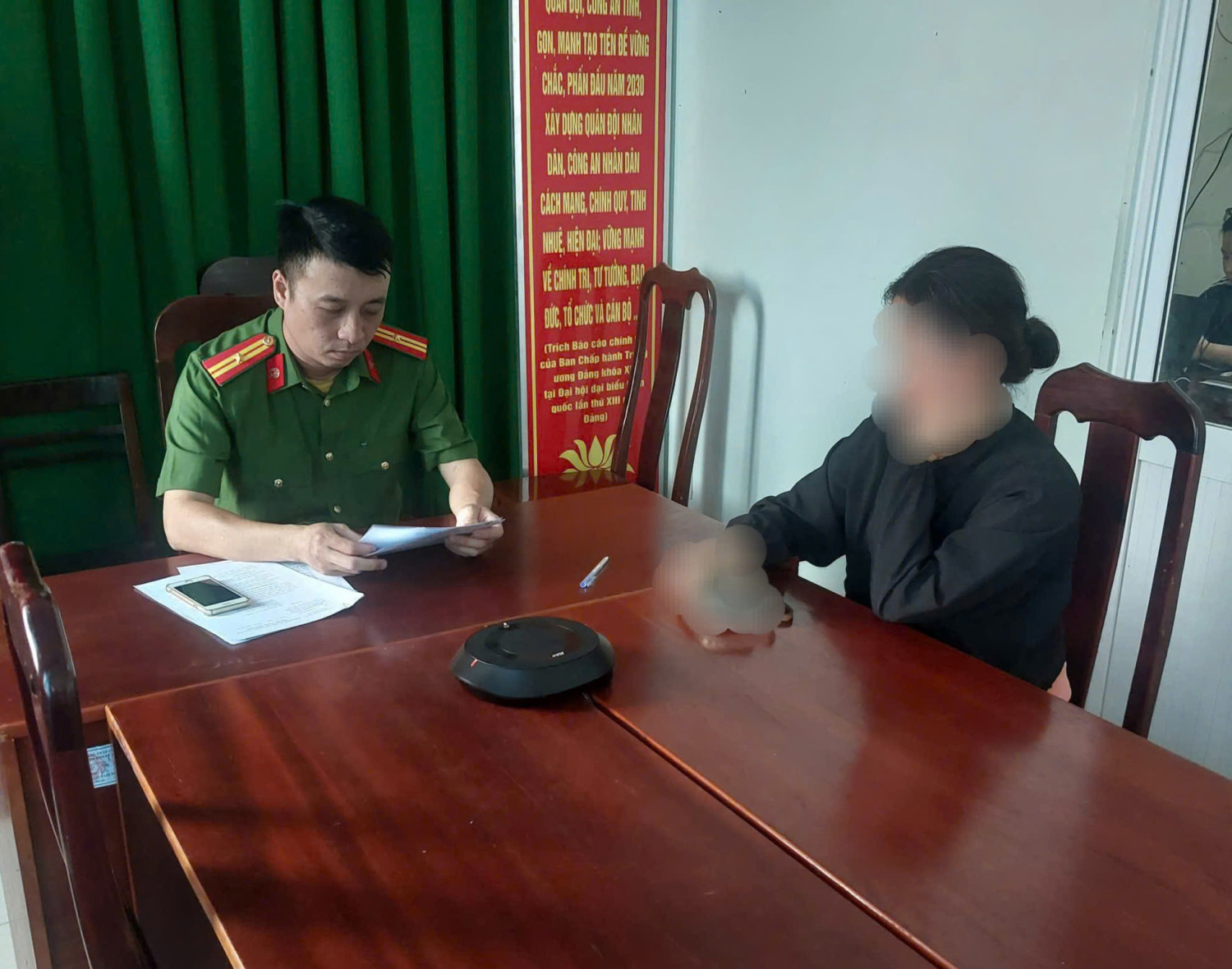 Cán bộ Công an xã Thạnh An lập biên bản vi phạm đối với chủ cơ sở lưu trú.