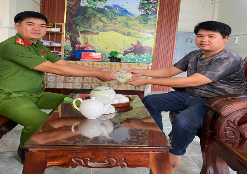 Công an phường Thuận Hưng tổ chức trao trả tài sản cho người đánh rơi.