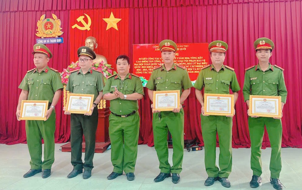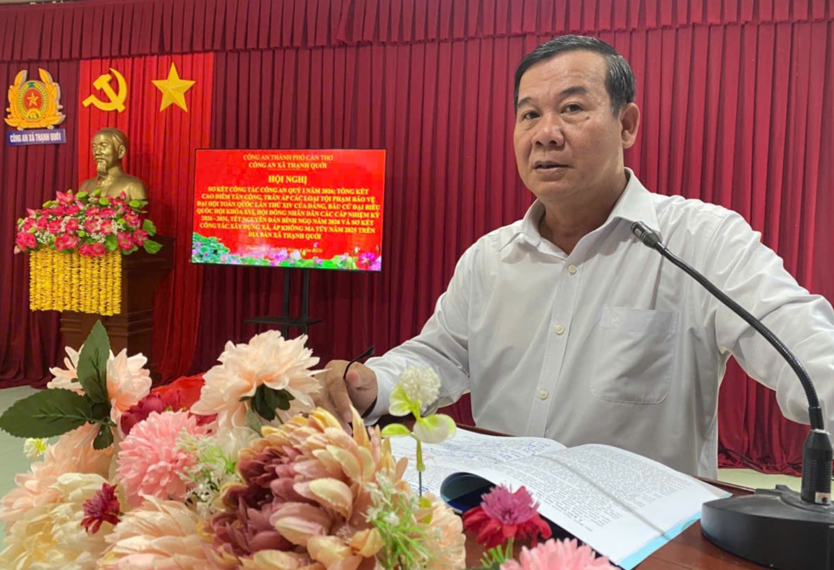Đến dự có đồng chí Huỳnh Thái Nguyên, Bí thư Đảng ủy - Chủ tịch Hội đồng nhân dân xã; đồng chí Cao Văn Ngoan, Phó Bí thư Đảng ủy - Chủ tịch Ủy ban nhân dân xã; đại diện các ban, ngành, đoàn thể, Quân sự xã và cùng các đồng chí trong Đảng ủy, Ban Chỉ huy và Tổ trưởng, Tổ phó các Tổ công tác và lực lượng an ninh trật tự ở cơ sở. Đồng chí Trung tá Phan Hà Phương, Ủy viên Ban Thường vụ Đảng ủy xã, Bí thư Đảng ủy, Trưởng Công an xã, Chủ trì Hội nghị. Công an xã đã làm tốt công tác tham mưu cho Đảng ủy, Ủy ban nhân dân xã chỉ đạo huy động cả hệ thống chính trị vào cuộc trong công tác đảm bảo an ninh, trật tự (ANTT). Bên cạnh đó chỉ đạo các Tổ công tác đồng loạt ra quân, triển khai đồng bộ các biện pháp nghiệp vụ, giải quyết tốt các vấn đề phức tạp nổi lên ngay tại địa bàn cơ sở, không để bị động bất ngờ xảy ra, góp phần đảm bảo an ninh chính trị, trật tự an toàn xã hội trên địa bàn xã. Đặc biệt, qua 03 tháng thực hiện cao điểm Công an xã Thạnh Quới đạt được 19/39 chỉ tiêu công tác năm 2026, chiếm tỷ lệ 48,72%; 20/39 chỉ tiêu đang tiếp tục thực hiện; kết quả thực hiện cao điểm tấn công, trấn áp các loại tội phạm đều đạt và vượt chỉ tiêu Công an thành phố giao, 25/25 chỉ tiêu, chiếm tỷ lệ 100%; công tác xây dựng địa bàn xã, ấp không ma túy, đạt 04/17 ấp không ma túy năm 2025.