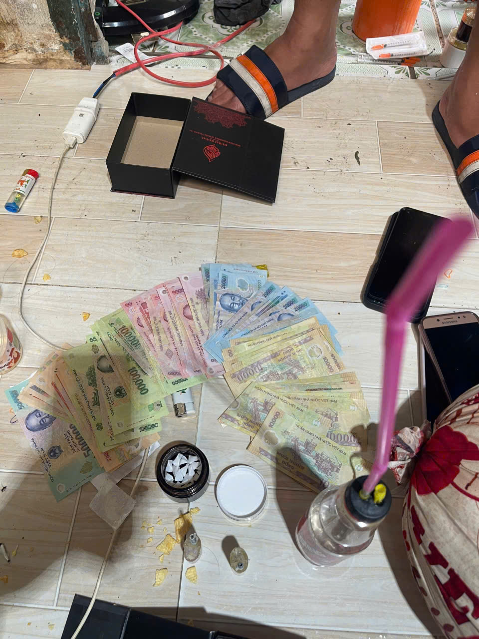Một số tang vật và tiền Việt Nam tạm giữ tại hiện trường