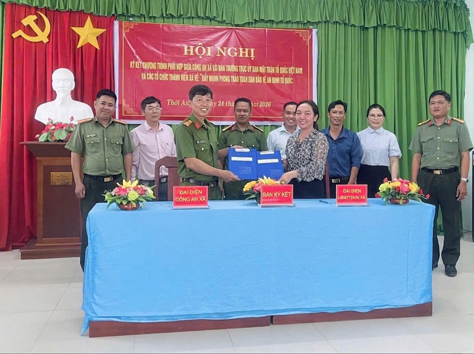Công an xã Thới An Hội tổ chức Hội nghị ký kết Chương trình phối hợp về “Đẩy mạnh phong trào toàn dân bảo vệ an ninh Tổ quốc trong tình hình mới” giai đoạn 2026 - 2033