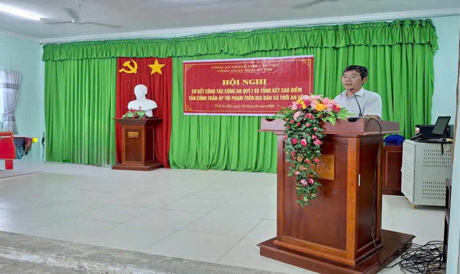 Công an xã Thới An Hội vừa tổ chức Hội nghị sơ kết công tác công an Quý I và tổng kết cao điểm tấn công trấn áp tội phạm trên địa bàn xã. Đến dự và chỉ đạo Hội nghị có đồng chí Đặng Thành Sơn, Bí thư Đảng ủy xã; đồng chí Bành Phước An, Phó Bí thư Đảng ủy, Chủ tịch Ủy ban nhân dân xã; đồng chí Trung tá Lê Thanh Liêm, Ủy viên Ban thường vụ Đảng ủy xã, Bí thư Chi bộ, Trưởng Công an xã; đại diện các ban, ngành, đoàn thể xã, Trưởng ban nhân dân các ấp, cùng toàn thể cán bộ chiến sĩ Công an xã và lực lượng tham gia bảo vệ an ninh, trật tự ở cơ sở.
