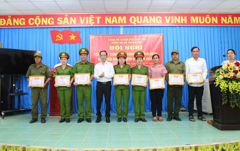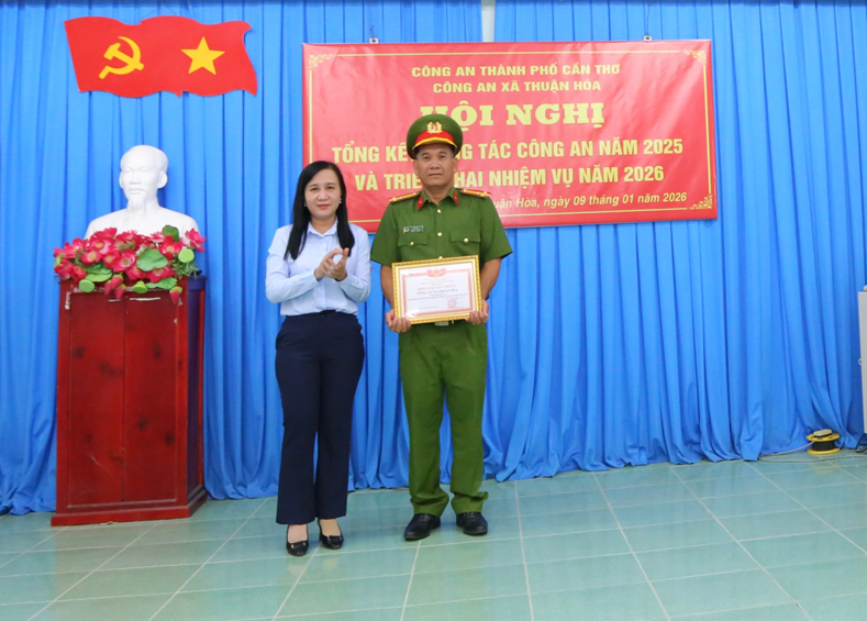 Chiều ngày 09/01, Công an xã Thuận Hòa tổ chức Hội nghị tổng kết công tác Công an năm 2025 và triển khai phương hướng, nhiệm vụ trọng tâm năm 2026. Tham dự hội nghị có đại diện lãnh đạo các phòng nghiệp vụ Công an thành phố; lãnh đạo Đảng ủy, Ủy ban nhân dân xã; Ủy ban Mặt trận Tổ quốc Việt Nam xã; đại diện các tổ chức chính trị - xã hội; đại diện các ngành trên địa bàn cùng Trưởng Ban nhân dân các ấp, các Tổ trưởng Tổ an ninh trật tự trên địa bàn và tập thể Chỉ huy, cán bộ, chiến sĩ Công an xã.