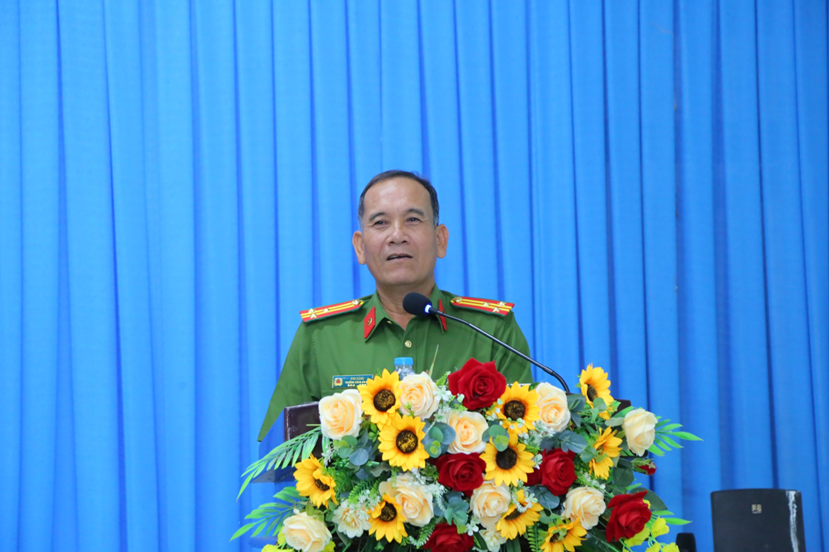 Thượng tá Kim Dũng, Trưởng Công an xã phát biểu kết luận hội nghị