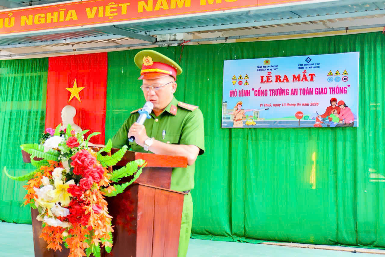 Ngày 13/4/2026, Công an xã Vị Thủy phối hợp Trường Trung học cơ sở (THCS) Ngô Quốc Trị long trọng tổ chức Lễ công bố Quyết định thành lập mô hình “Cổng trường an toàn giao thông” tại Trường THCS Ngô Quốc Trị.