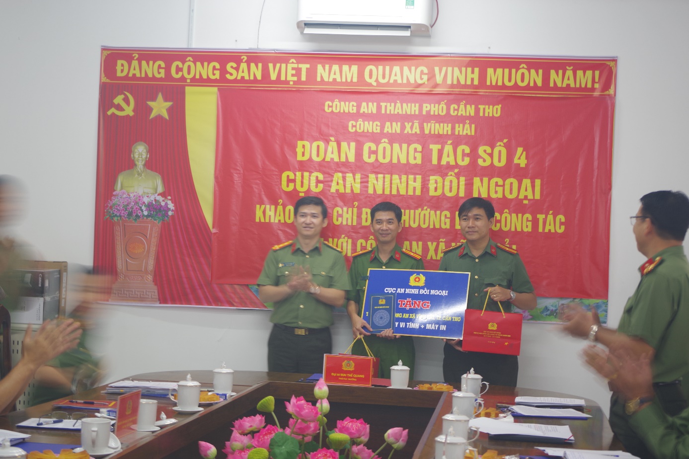Kết thúc buổi làm việc, Đoàn công tác đã tặng Công an xã Vĩnh Hải 01 bộ máy tính và máy in phục vụ công tác chuyên môn của đơn vị. Đây là sự quan tâm, động viên thiết thực của lãnh đạo Cục An ninh đối ngoại đối với Công an xã Vĩnh Hải, góp phần khích lệ tinh thần cán bộ, chiến sĩ tiếp tục nỗ lực hoàn thành tốt nhiệm vụ được giao./.