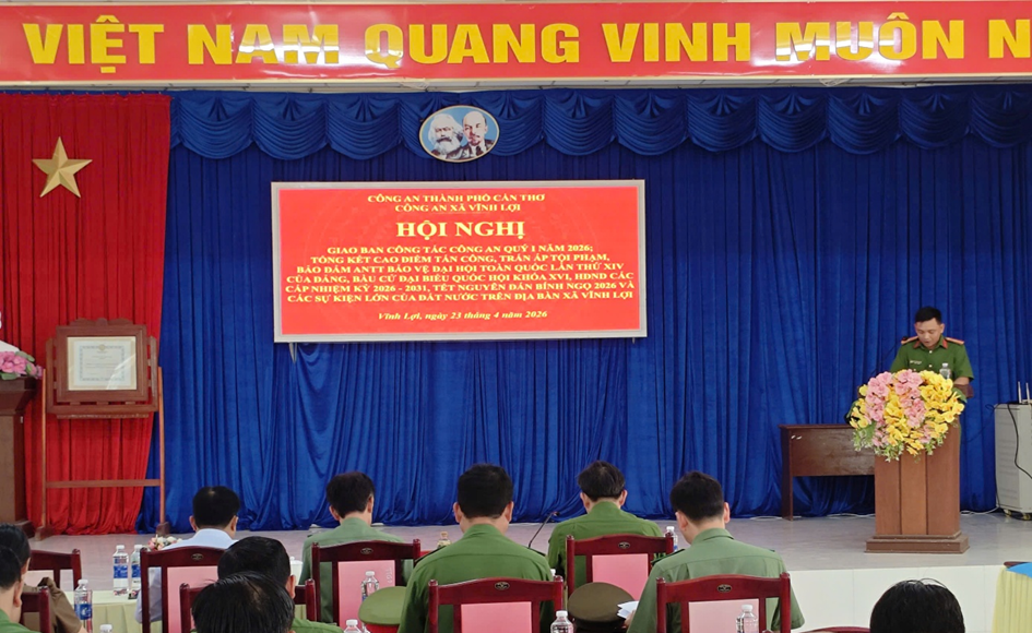 Nhằm đánh giá toàn diện kết quả công tác và đề ra phương hướng, nhiệm vụ trong thời gian tới, Công an các xã Vĩnh Lợi và Lương Tâm đã tổ chức Hội nghị giao ban công tác Quý I năm 2026, gắn với tổng kết cao điểm tấn công, trấn áp tội phạm, bảo đảm an ninh, trật tự trên địa bàn. Hội nghị là dịp quan trọng để nhìn nhận rõ nét vai trò nòng cốt, tinh thần chủ động, trách nhiệm của lực lượng Công an xã trong thực hiện nhiệm vụ bảo vệ an ninh, trật tự tại cơ sở. Trong Quý I năm 2026, dưới sự lãnh đạo, chỉ đạo sát sao của cấp ủy, chính quyền địa phương và Công an thành phố, Công an xã Vĩnh Lợi và Lương Tâm đã triển khai đồng bộ, hiệu quả các mặt công tác. Lực lượng Công an xã phát huy tốt vai trò “bám địa bàn, bám dân”, chủ động nắm chắc tình hình từ sớm, từ xa; kịp thời tham mưu nhiều giải pháp phù hợp, không để phát sinh điểm nóng, phức tạp về an ninh, trật tự.