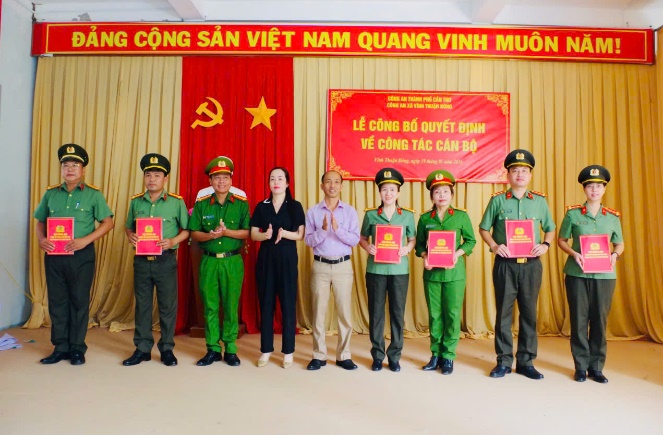 Tại buổi lễ, đồng chí Thiếu tá Nguyễn Hoài Thương, Phó Trưởng Công an xã đã thông qua Quyết định điều động 06 đồng chí cán bộ từ Công an các đơn vị nghiệp vụ về tăng cường, bố trí công tác tại các Tổ Cảnh sát khu vực, Tổ An ninh và Tổ Tổng hợp Công an xã Vĩnh Thuận Đông. Việc tăng cường lực lượng góp phần quan trọng trong việc kiện toàn tổ chức bộ máy, nâng cao chất lượng, hiệu quả thực hiện nhiệm vụ bảo đảm an ninh, trật tự tại địa bàn cơ sở.